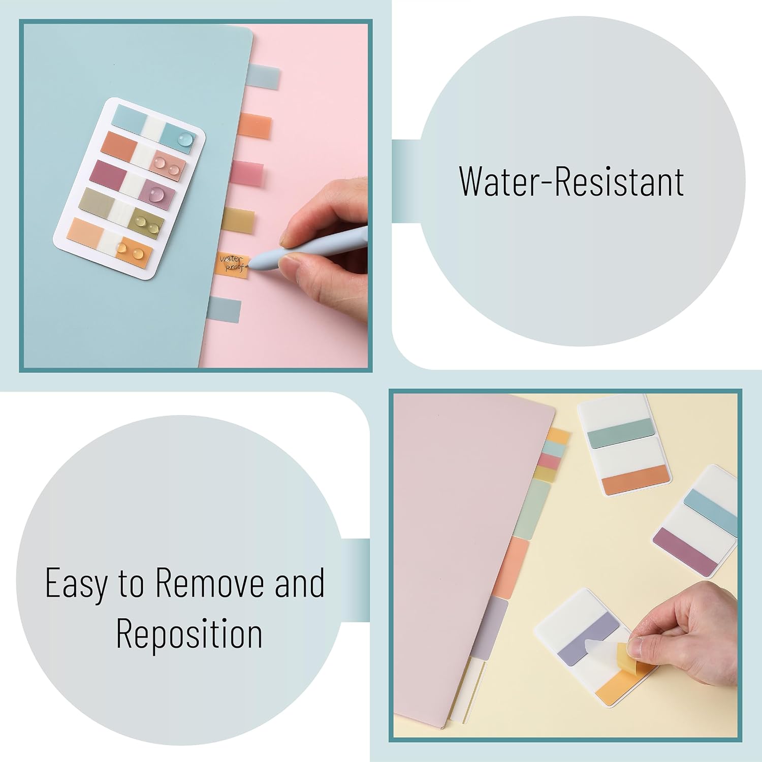 • Half of the file tabs have self-adhesive backing while the other half can be written on, making them repositionable and convenient for sticking and marking as well as removal without residue.