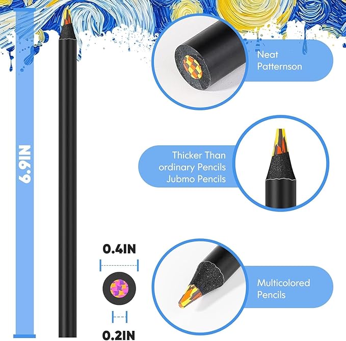 • Vibrant 8 Multicolor Pencils: Our colored pencils are different from others, there are 8 vibrant assorted colors in Gift box packed while others only have one color! Immerse yourself in the magic of 8 rainbow pencils, where each stroke reveals a symphony of captivating colors. Infused with over 3 hues, these pencils offer an element of surprise with every line you draw. Transform your artwork with a rich array of shades, catering to a diverse range of creative needs and preferences.