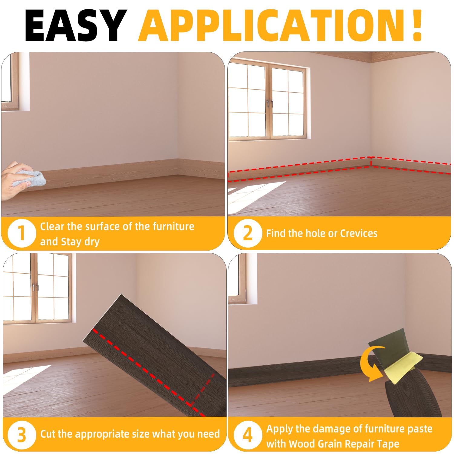 • High Quality - The Wood Grain Repair Tape is made of high quality Self Adhesive, which is durable and elastic, with a smooth surface and not easy to be dirty.When you repair Tables, Chairs, Baseboards, Doors, Windows, Floors, All Kinds of Furniture Renovation, Wood Grain Repair Tape will be your first choice
