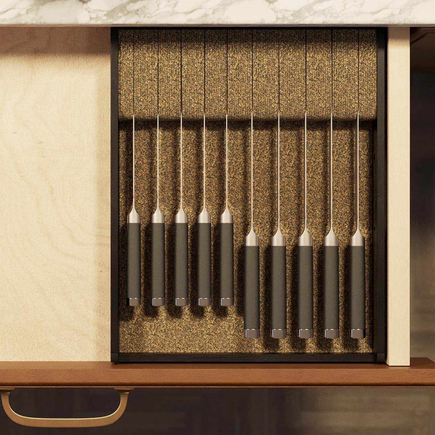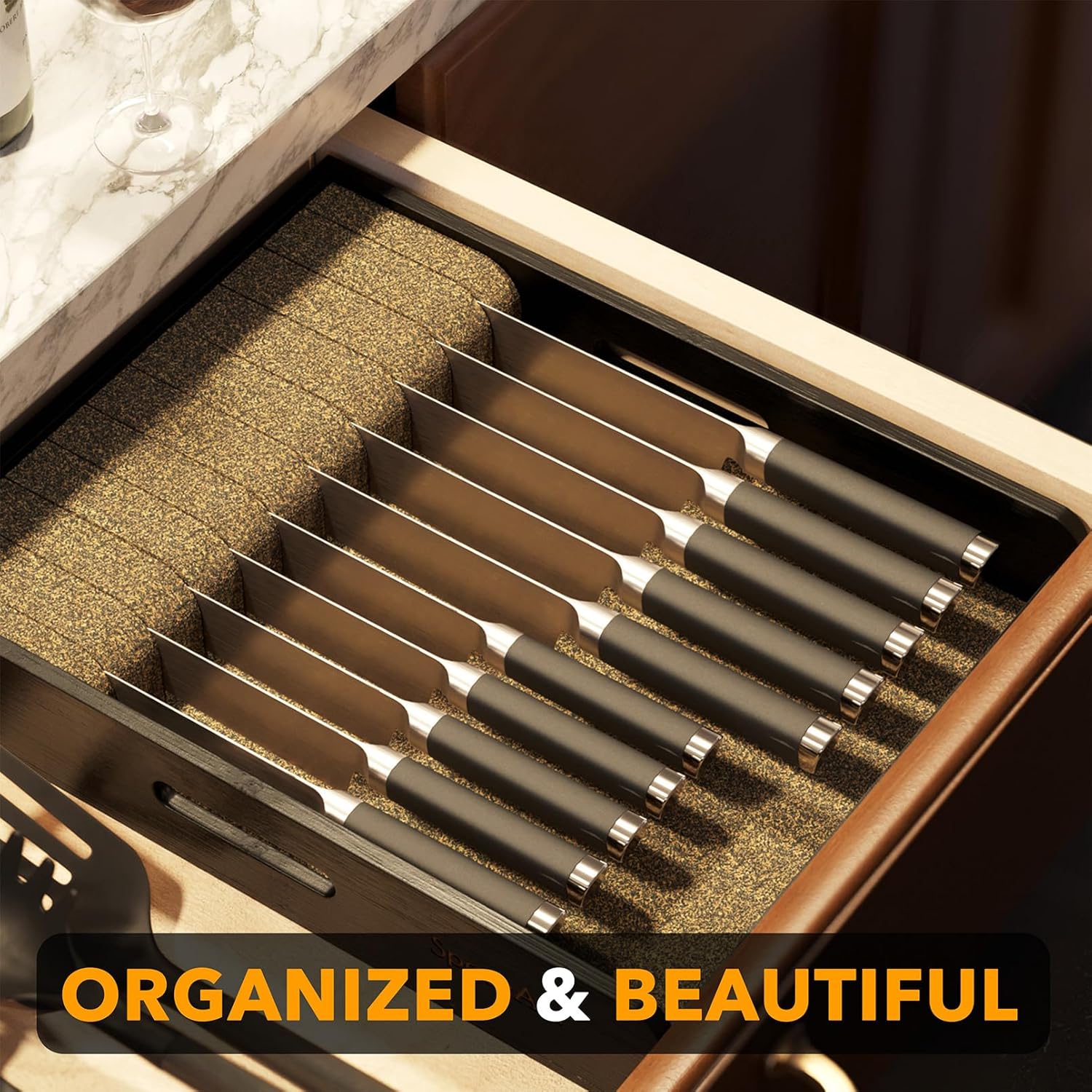 • BLACK ORGANIZED KNIFE DRAWER - Make your kitchen drawer neat and organized with bamboo knife organizer. The knives organizer is designed for your different knives kitchen drawer organization