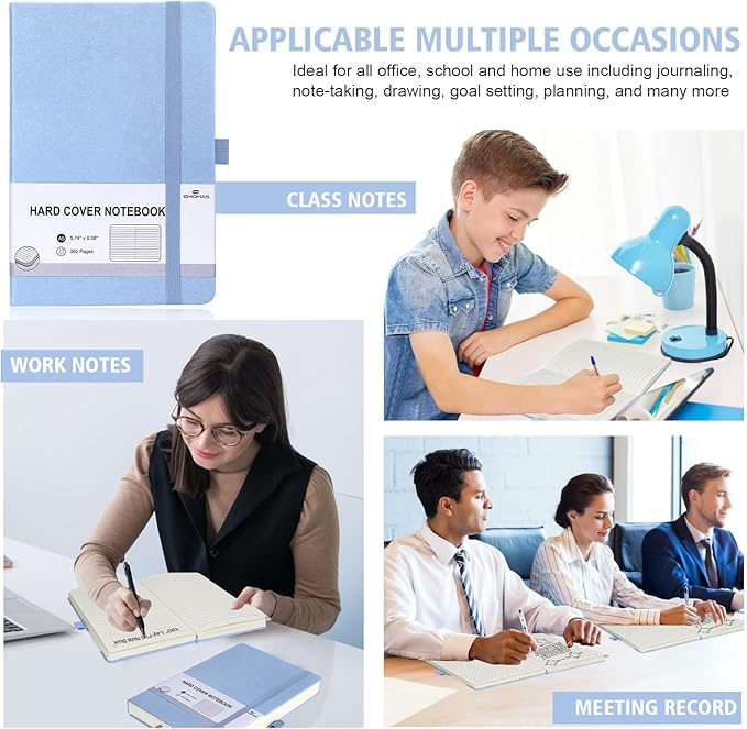 • Size & Package:9.8 in by 6.9 in Lined Journal Notebooks features durable and water-resistant vegan leather cover, can protect the pages inside for years and provide a comfortable writing surface.rounded corners, 360 pages, ribbon bookmark & elastic closure band.