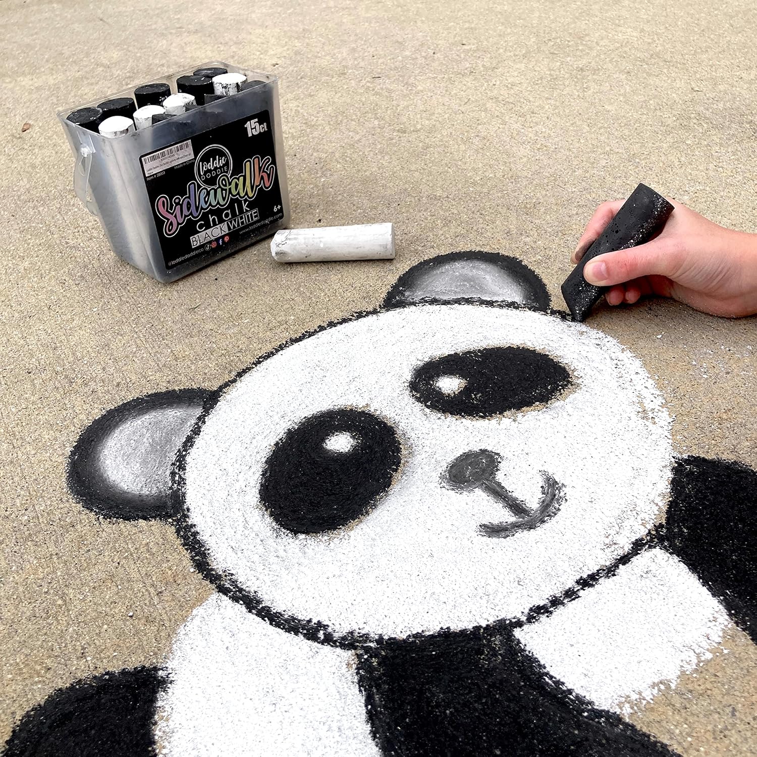 Loddie Doddie Jumbo White Sidewalk Chalk - 20-Count Non-Toxic Bucket with Holder - Easy-Grip Low-Dust Sticks - Sidewalk Chalk for Kids & Outdoor Kids Activities