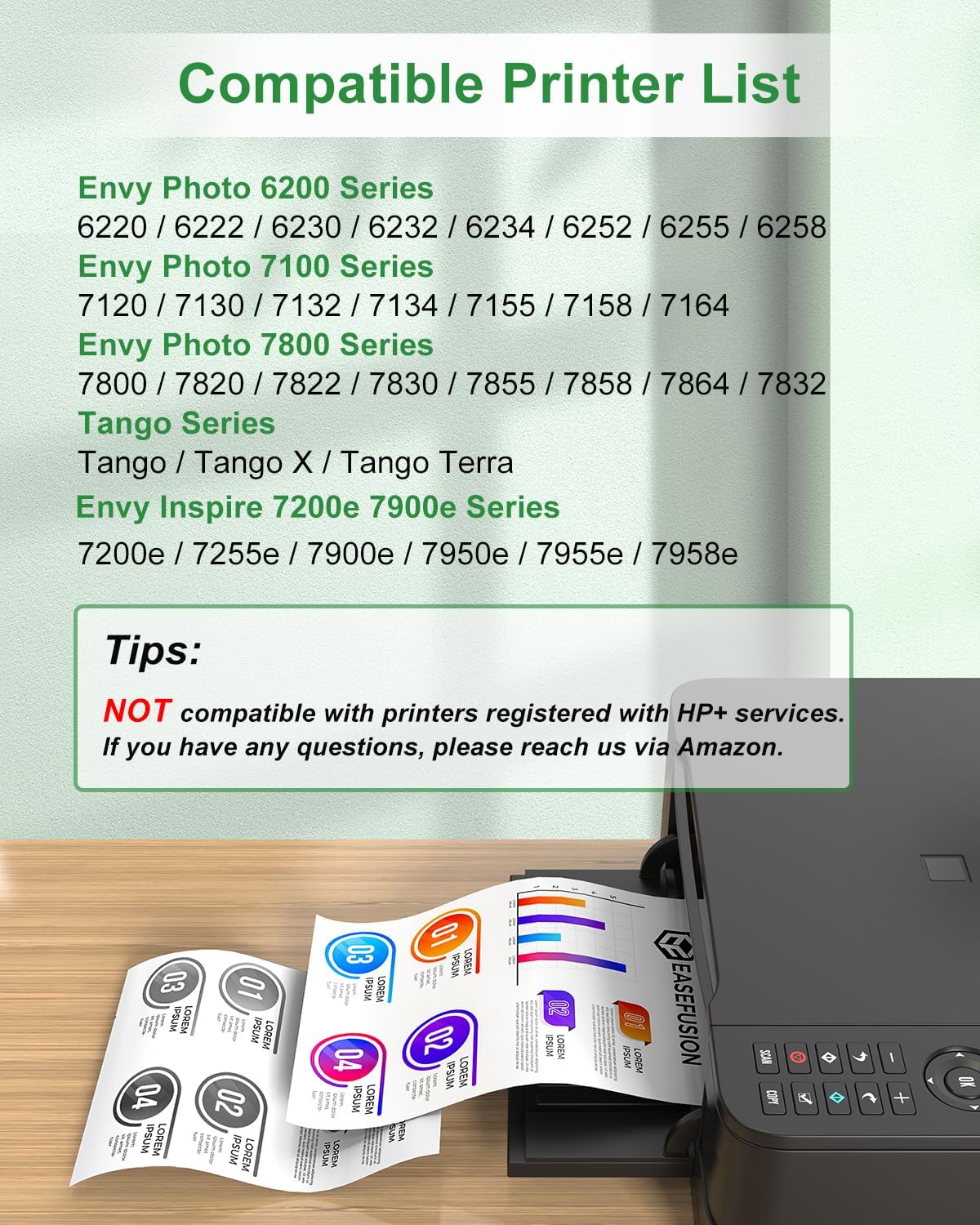 • Exceptional compatibility: EaseFusion 64 xl ink cartridges combo pack replacement for hp64xl hp64 ink cartridges will work flawlessly with your HP Envy Photo 6220, 6222, 6230, 6232, 6234, 6252, 6255, 6258; HP Envy Photo 7120, 7130, 7132, 7134, 7155, 7158, 7164; HP Envy Photo 7800, 7820, 7830, 7855, 7858, 7864; HP Tango, Tango X, Tango Terra printers