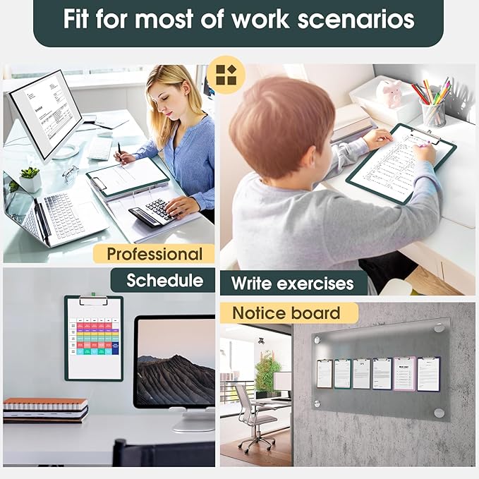 • Strong Plastic Clipboard: Our clip board is made of strong and high-quality plastic material, Making them very strong, Not easy to break, Clipboards with high-gloss surface and sturdy base. Cleanable and waterproof