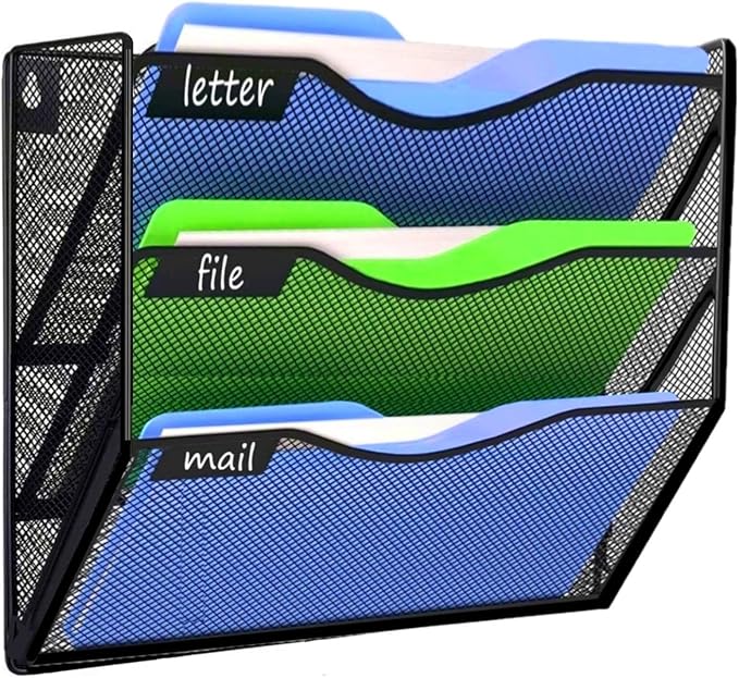 Kuntine.B Wall File Organizer Office Hanging Magazine Holder Wall File Organizer for Office Home (Black, 3 Tier)