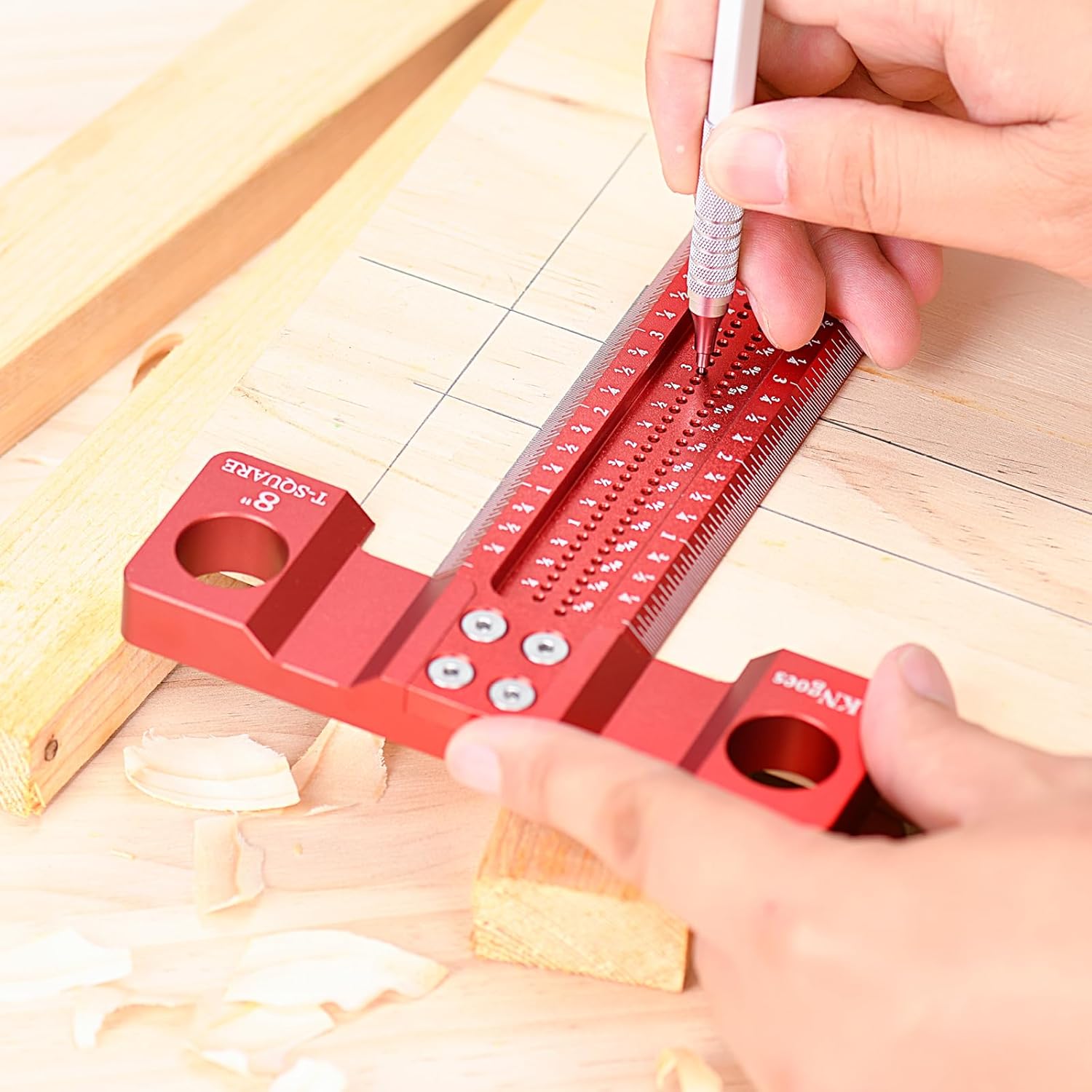 • 【Precise Marking】On the two outer edges of the blade, there are laser engraved lines every 1/32in , and the blade itself has precisely spaced 1.3mm holes drilled every 1/16in. Stick a pencil in the hole, slide it along your workpiece and a perfectly spaced line accurately following the stock edge.
