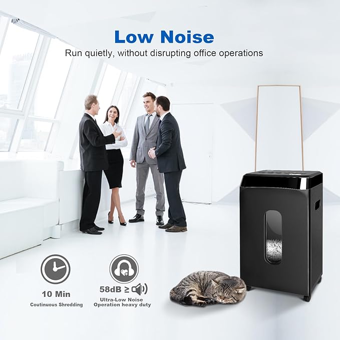 • 【Ultra-Quiet 58dB Operation】 Enjoy peaceful shredding with noise levels as low as 58dB—quieter than a normal conversation. The lightweight 18.1-pound design and 4 smooth-rolling casters ensure effortless mobility between rooms or offices.