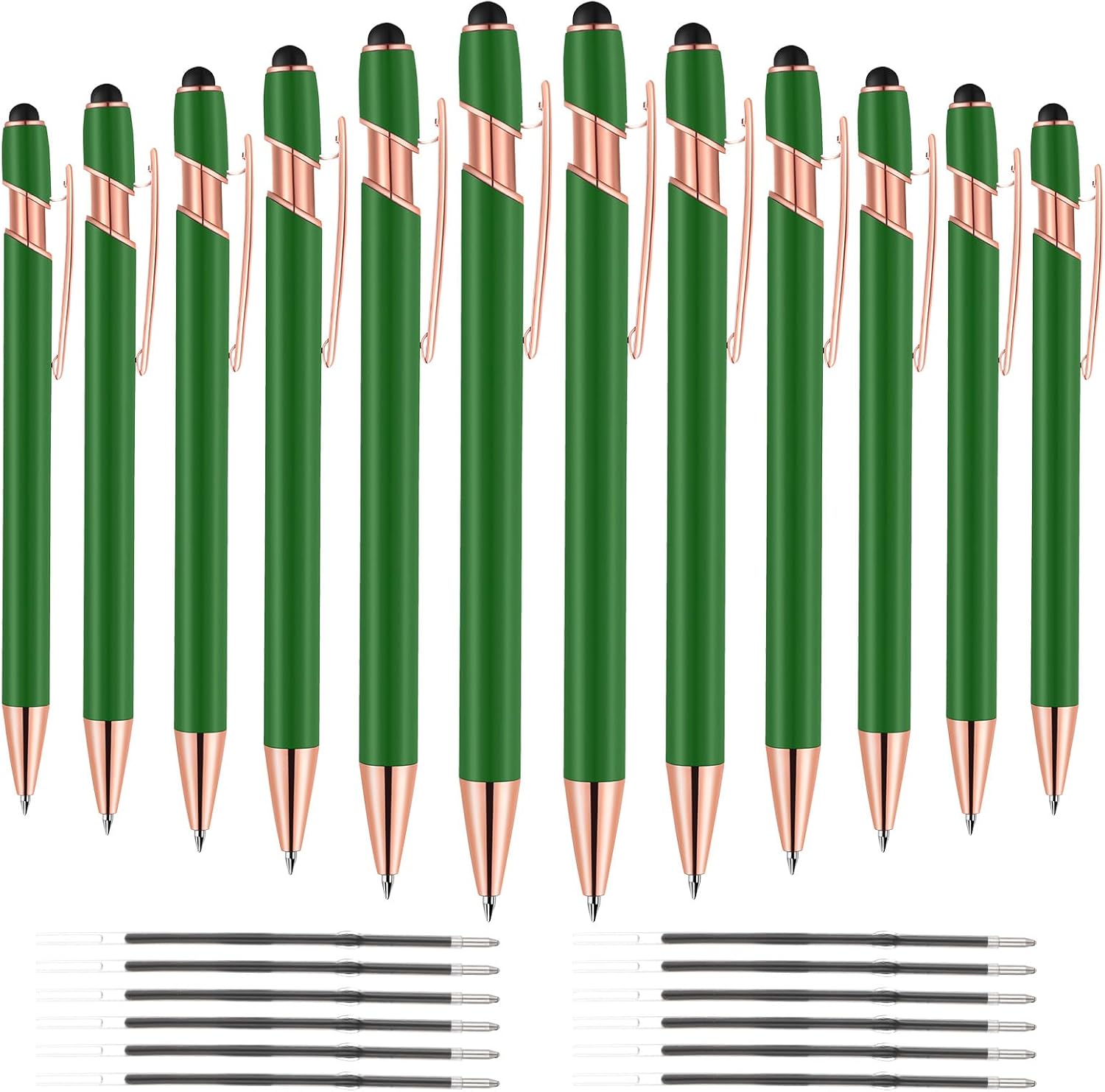 • Package Included: 12 pieces ballpoint pens with stylus tips , and Extra 12 picecs ink(total 24 pieces black ink) Ballpoint pen refills are replaceable;