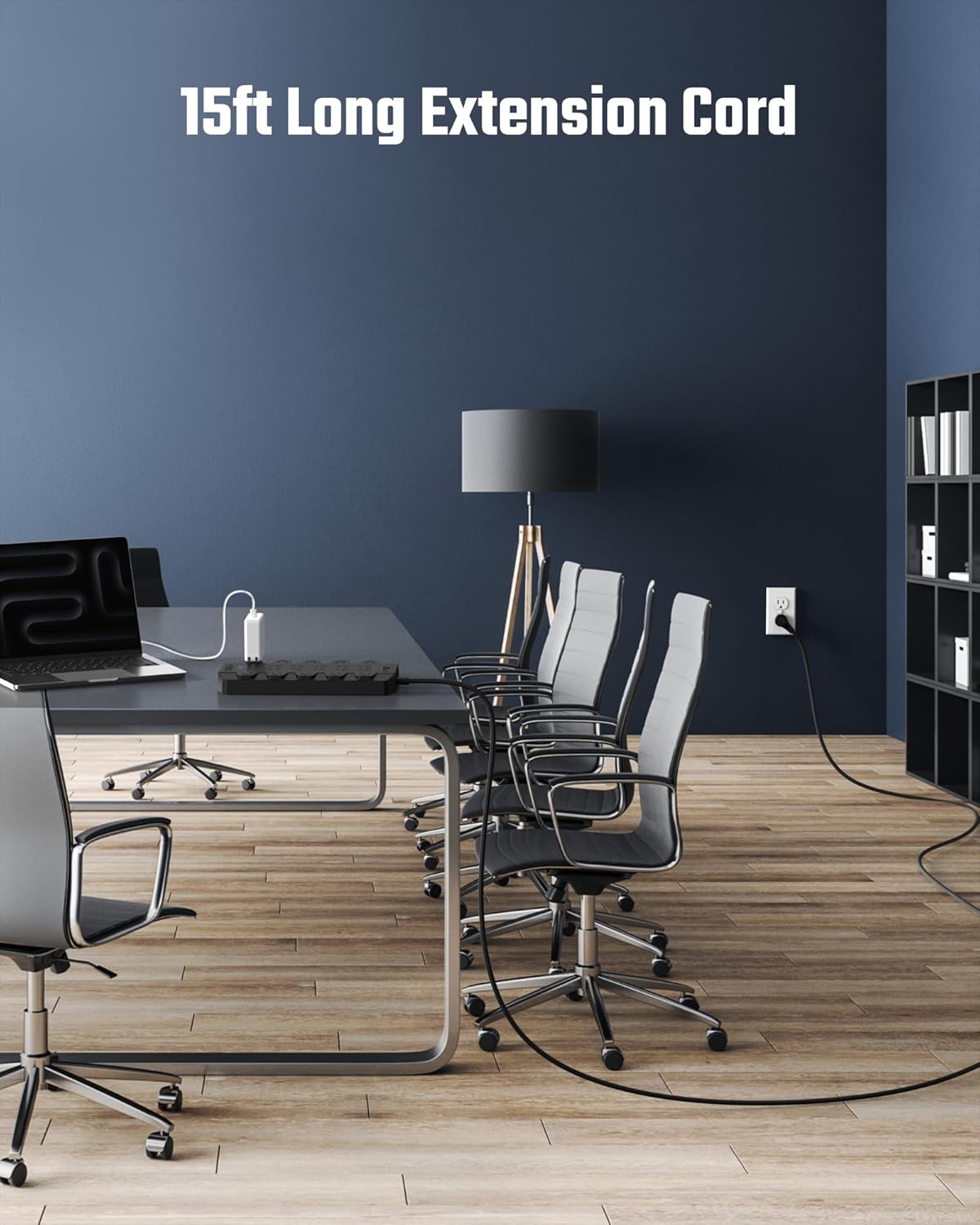 • 【All-Round Safety Protection】8-fold safety protection: 2100J surge protection, overload protection (15A), over-current protection, short-circuit protection, over-voltage protection, overheat protection, grounded protection, and flame-retardant (rated UL94 V-0, the highest level of fire resistance for casing materials). The power strip is fully compliant with FCC and RoHS safety standards, and reinforced with a UL-Recognized extension cord and flat plug. (1875W/15A)