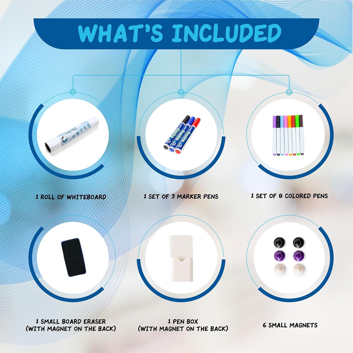 • Easy writing and erasing: This magnetic whiteboard paper for wall writes smoothly and erases easily without leaving any ghosting, even after 60 days.The included marker is water-based and can be erased with a paper towel or board eraser or a rag.