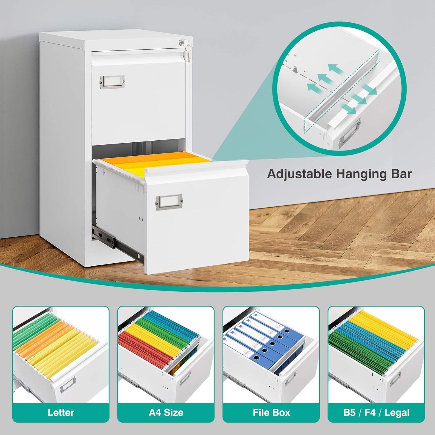 • ✔️☆【Ample Storage Space】: The metal drawer file cabinet features deep and spacious drawers on full extension and smooth silent rails, providing enough space to store all different size documents, such as Letter/Legal/A4 size. The filing cabinet comes with removable and adjustable hanging rods to meet most daily needs. to help you keep your files organized. Opens and closes seamlessly.