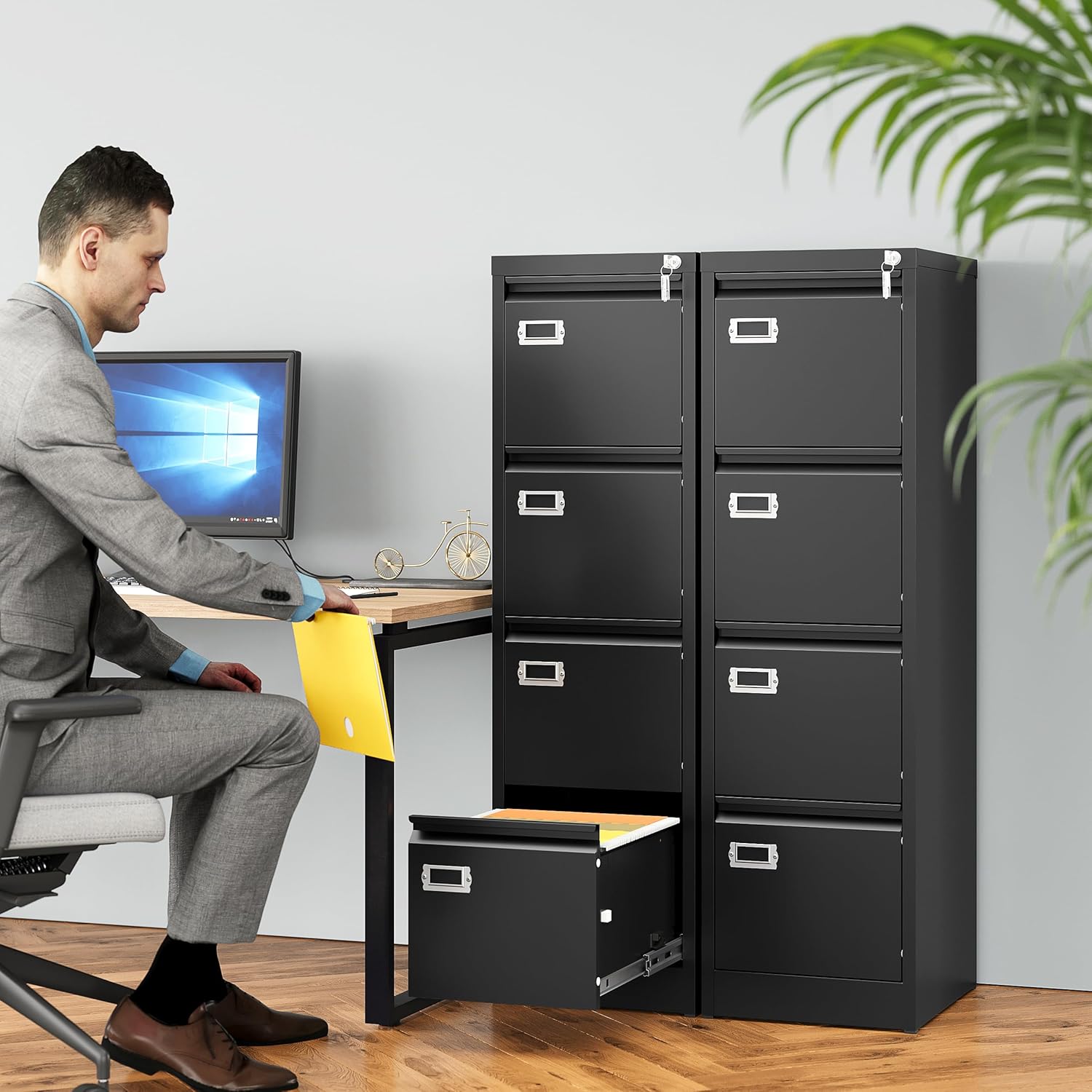 • SECURE STORAGE: 4 drawer filing cabinet with lock features a built-in lock system with keys to protect sensitive documents and valuables.Anti-tip interlock system allows only one drawer open at a time.Plus label holders for easy file identification.