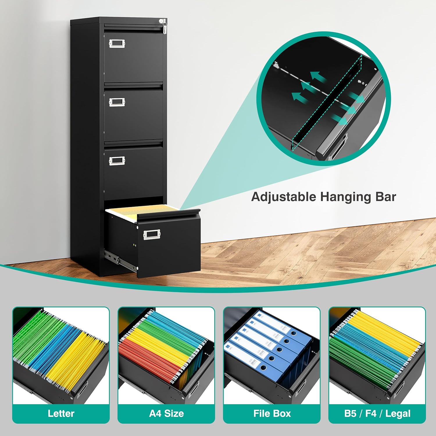 • AMPLE STORAGE: Office file cabinets equipped with removable hanging bar, providing enough space to supports letter size, legal size,A4 size file in all drawers.