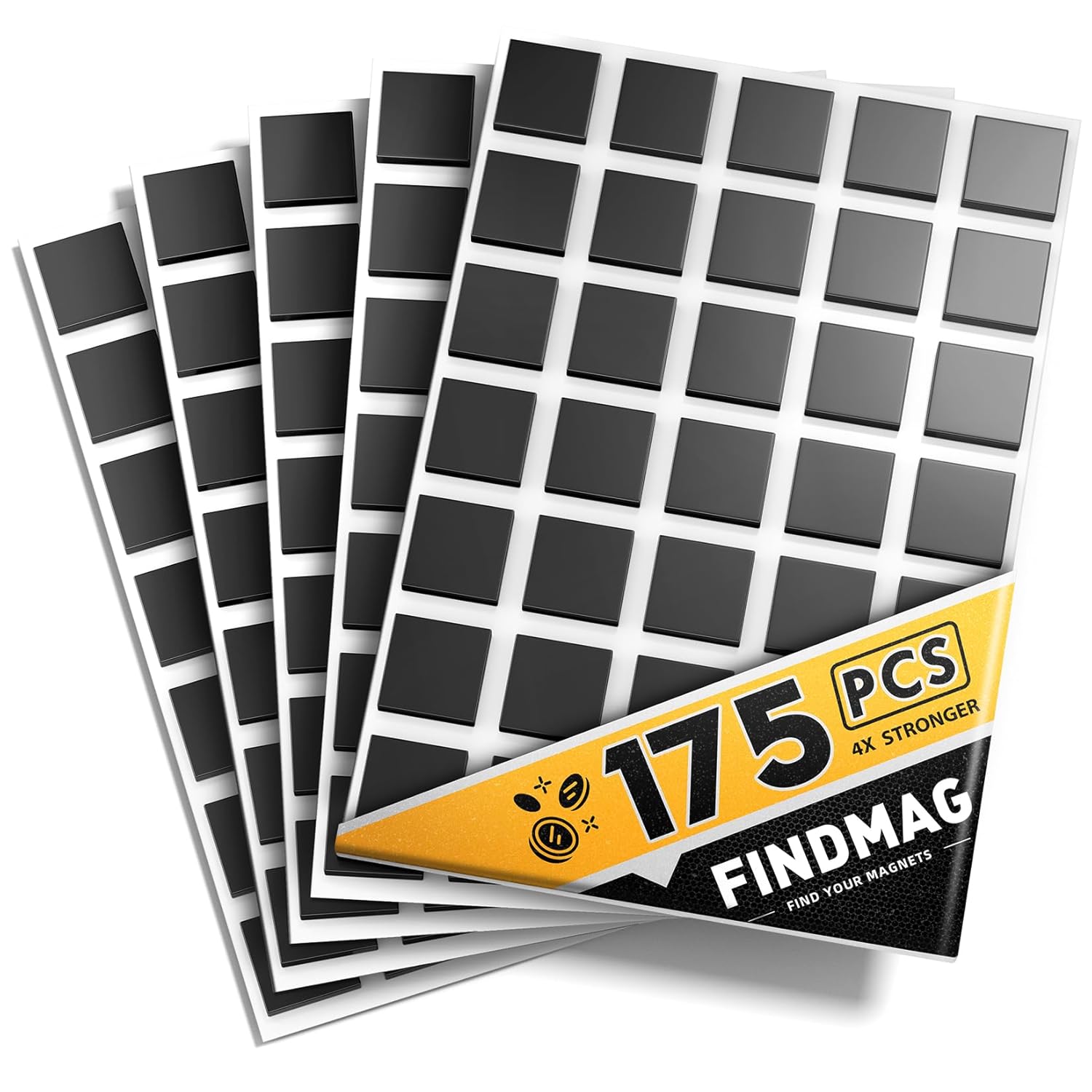 FINDMAG Magnetic Tape, 175 Pcs Square Magnets with Adhesive Backing, Flexible Magnetic Tape for Crafts, Magnetic Strip for DIY Projects, Hanging & Organizing Light Objects (Each 20x20x2mm)