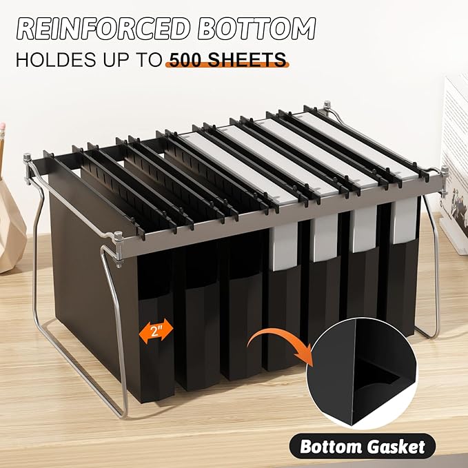 • 【EXTRA CAPACITY & REINFORCED BOTTOM】: Hanging file folders buttom 2" expansion design for up to 500 files at once; includes black plastic plate-reinforced insert for extra support on bottom panel.