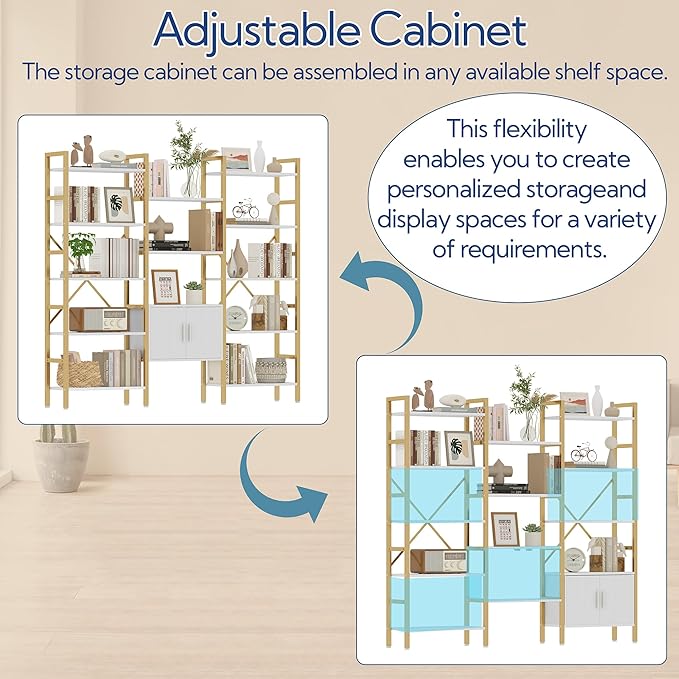 • 【Adjustable Shelves & Storage Cabinet】Unlike fixed shelves, this bookcase features adjustable shelves, allowing you to customize the height and placement of each shelf according to your specific needs. Additionally, The storage cabinet can be assembled in any available shelf space. This flexibility enables you to create personalized storage and display spaces for a variety of requirements.