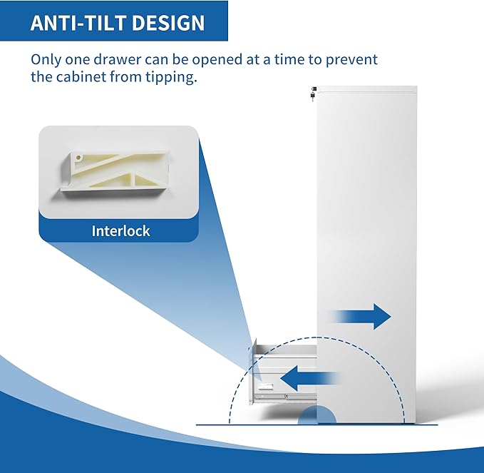 • 【Anti-tilt Design】This 5 drawer metal file cabinet designed with full extension and steel ball-bearing suspension, all drawers of the black vertical 5 drawer file cabinet can be opened and closed quietly and easily. The anti-tilt system ensures that only one drawer can be open at a time, preventing the metal file cabinet from tipping over. You can have peace of mind knowing that your important documents and items are safe and secure.