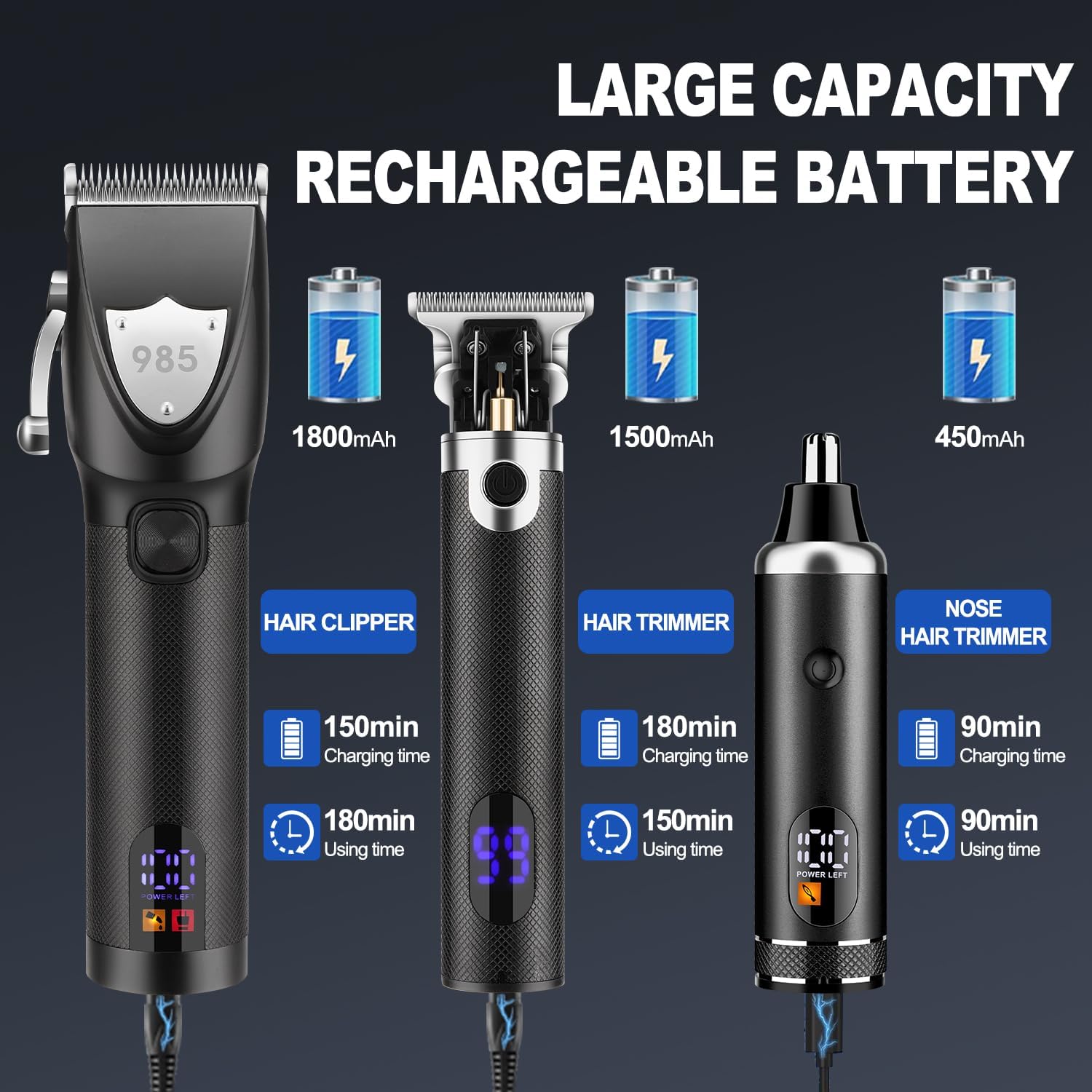 RESUXI Hair Clipper for Men T Blade Zero Gapped Nose Hair Trimmer Set, Professional Cordless Barber Clippers Hair Cutting Machine Haircut Grooming Kit,Black