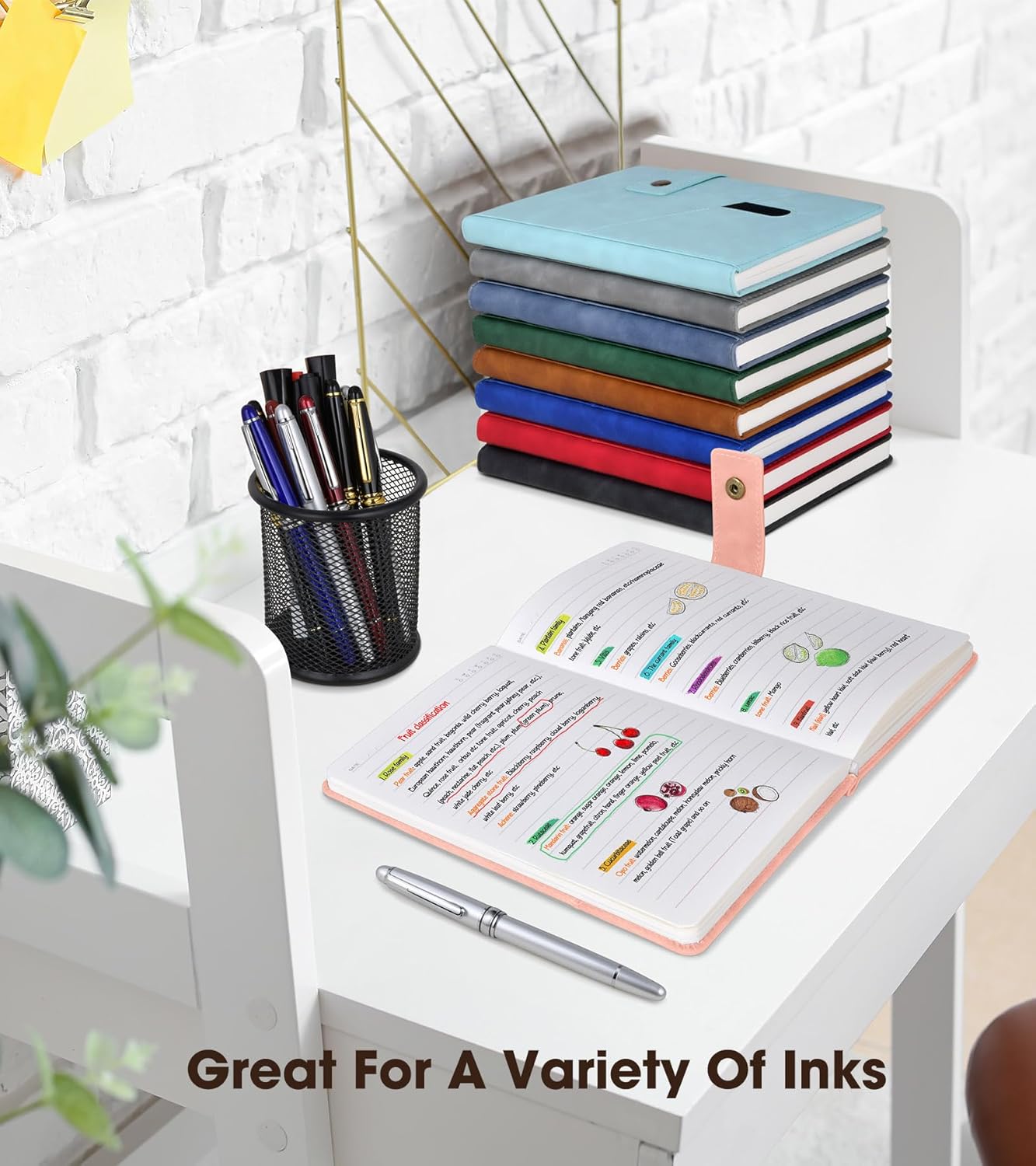 • 【PREMIUM THICK PAPER】:5.9 X 8.4 inch journal notebook with 200 pages 100 gsm lined paper, thicker 30% than normal, this pink notebook is designed to avoid feathering and the paper is ink-proof, suit for most pens, but the wettest pen inks. Archival-quality pages made from acid-free paper-resists damage from light and air, the cream paper is easy on eyes.Let your creation more freedom on the wide ruled journal to write in.