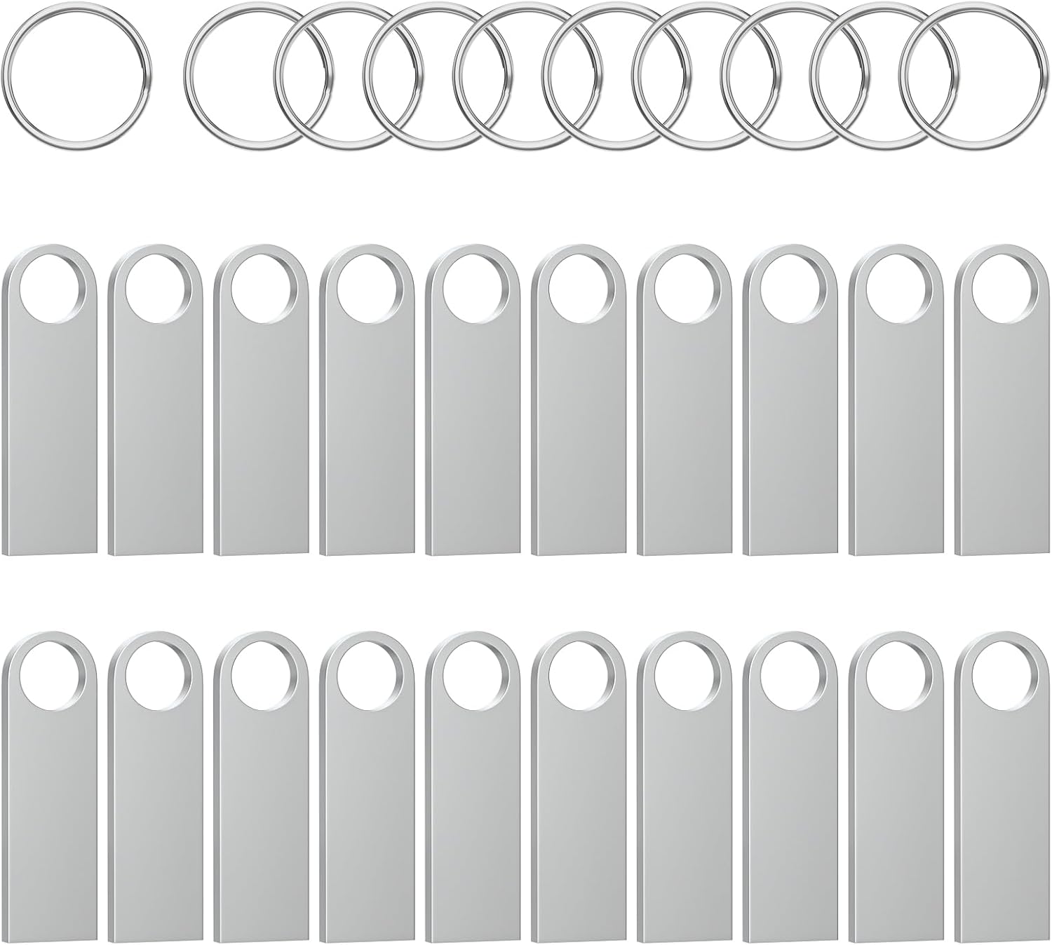ABLAZE 2GB Flash Drive 20 Pack, Metal USB 2.0 Thumb Drives with Keychains USB Sticks Pendrives (Sliver)