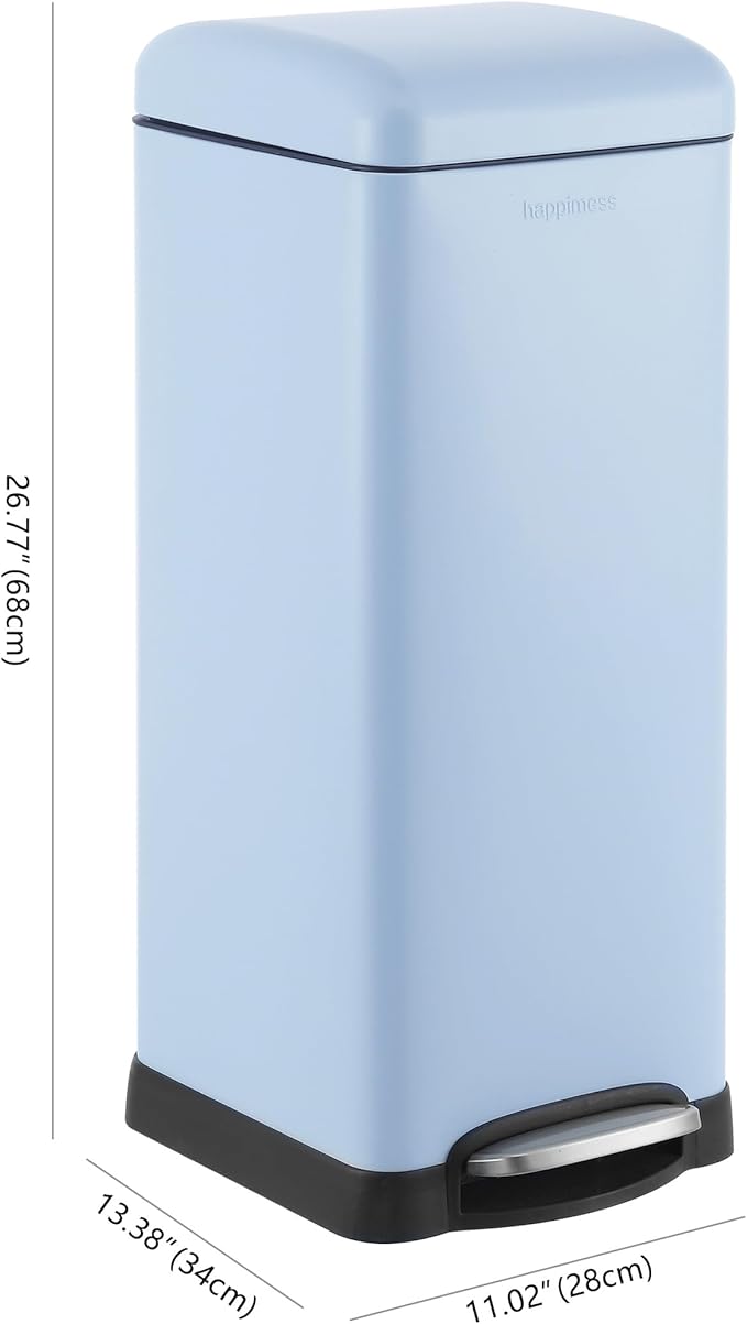 happimess HPM1007I Betty Retro 8-Gallon Step-Open Trash Can, Fingerprint Resistant, Modern, Minimalistic for Home, Kitchen, Laundry Room, Office, Bedroom, Bathroom, Tide Pool Blue