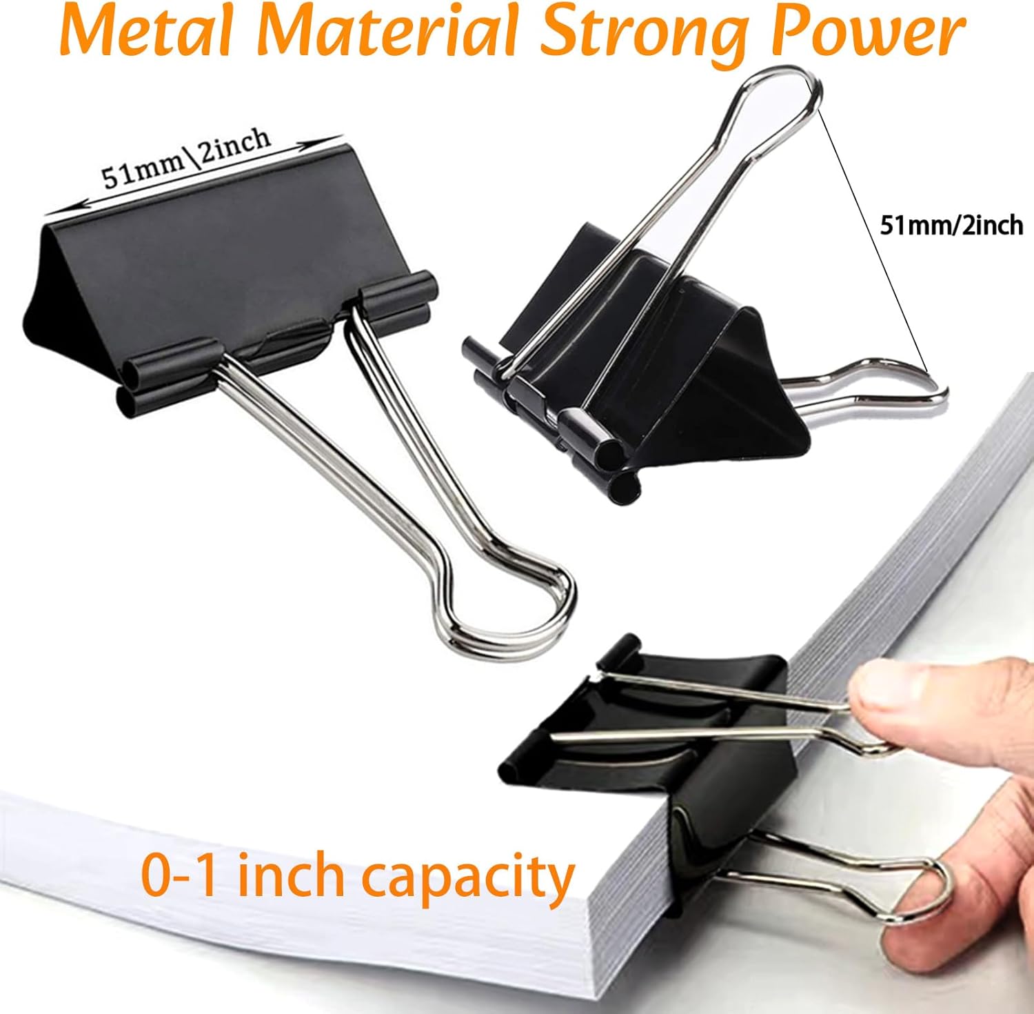 • PACKAGE INCLUDED: There are 60 packs large binder clips, 2inch width, 1 inch capacity. which are perfect for your every day needs.