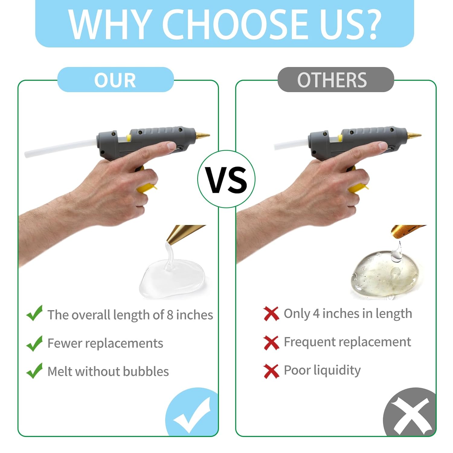 • TOUGH & FAST BONDING: Our hot glue gun sticks are made of clear EVA hot melt adhesive, which is tough, can cure quickly and stick firmly, and can be steadily stuck to almost any material within 30 seconds. Clear, transparent, and free of any impurities, mini hot glue sticks for glue gun are suitable for different surfaces and gap-filling applications, durable, and long-lasting!