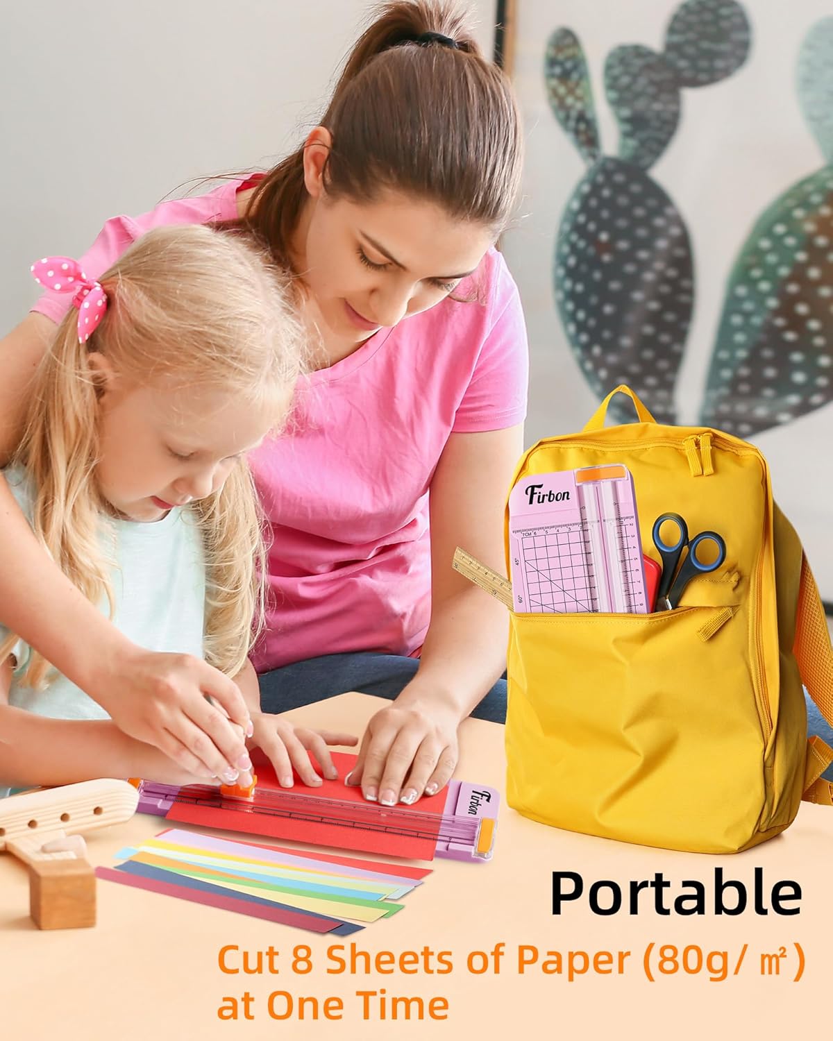 Firbon Pink A5 Paper Cutter, Straight Small Paper Trimmer with Side Ruler for Scrapbooking Craft, Paper, Coupon, Label, Cardstock