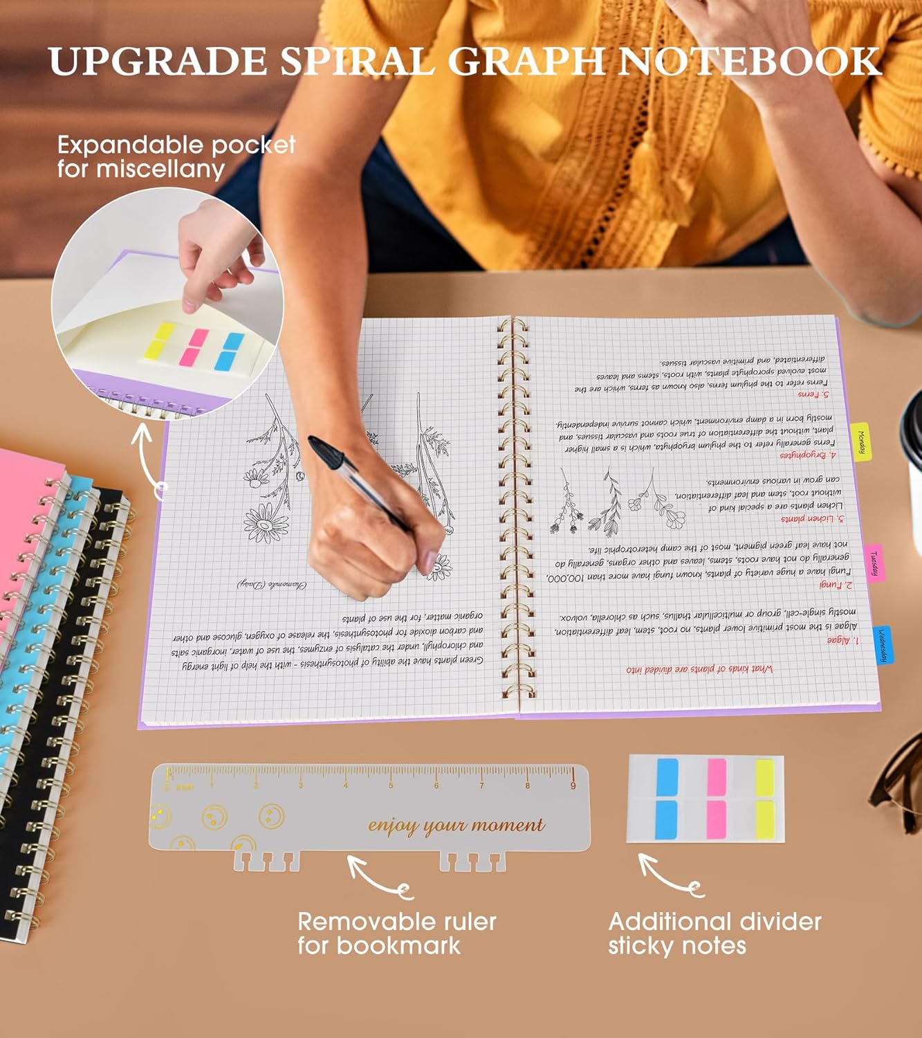 • 【Multiple Usage & After Sale】 Purple spiral graphing journal perfect for school, office, home, work organization, college, students, adults, travelers, business executives, scientists, and people in many other fields. Suitable for writing journals, study, engineering notebook, drawing, sketching, travel journals, work notebooks or for taking notes in college classes or meetings. If you encounter quality problems, please contact us, we will give you a full refund or replacement!