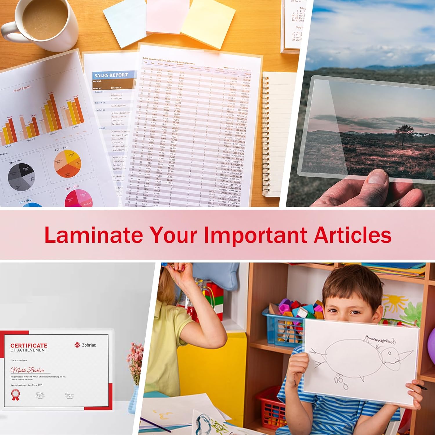 • Wide Application:Satisfy your different requirements, use this lamination pouches for certificates, signs, photos, awards, calendars, kids' artwork, etc,