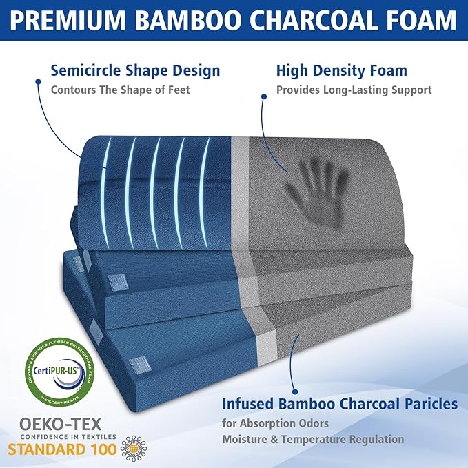 • [Supportive High Density Foam] The foot rest under desk utilizes high-density foam infused with bamboo charcoal particles. Compared to ordinary foam, high-density foam provides better support, less deformation, and greater resilience. Additionally, the filled bamboo charcoal particles effectively regulate temperature and odors.