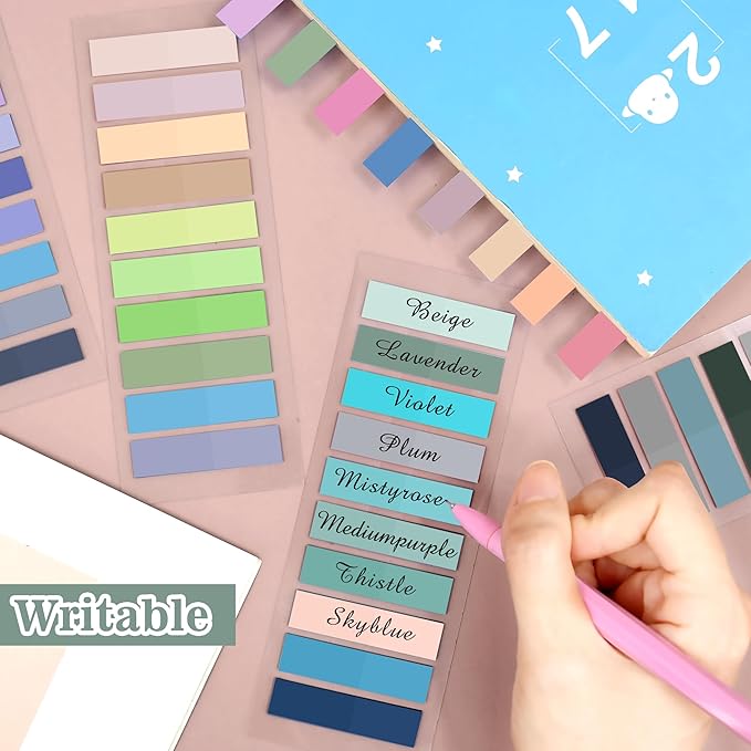 SIQUK 4200 Pieces Sticky Tabs for Annotating Books Tabs Morandi Sticky Flags Clear Transparent Page Markers Strip Page Flags Colored Tabs Writable and Repositionable Book Annotation Tabs