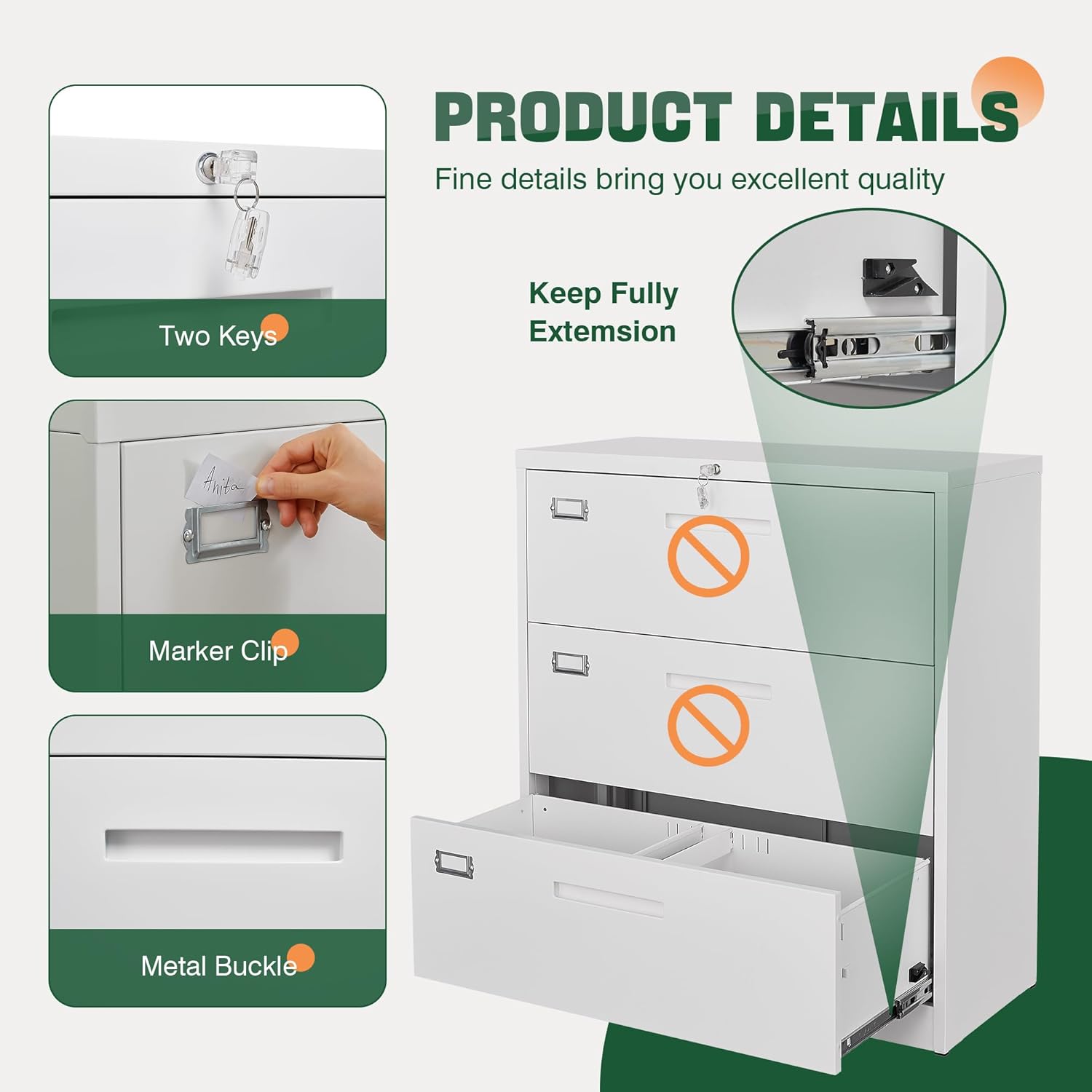 Letaya 3 Drawer File Cabinets with Lock,Metal Lateral Filing Cabinets for Home Office Organization Hanging Storage Letter/Legal/F4/A4(Assembly Required)