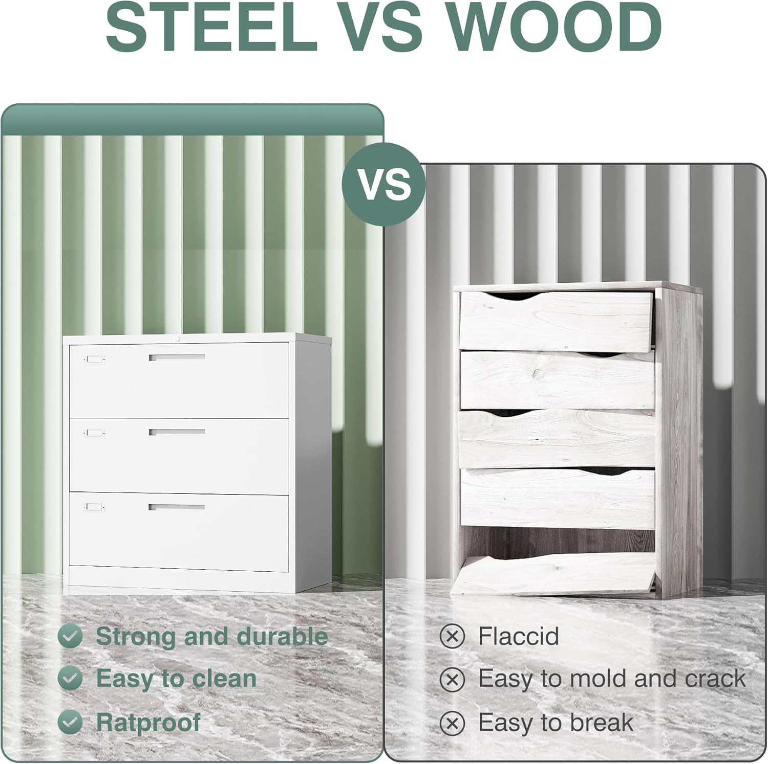 • All-Steel Rustproof:Lateral file cabinet is made of thick high-strength cold-rolled solid all-steel material.Rugged and not easily deformed, powder-coated construction making it immune to corrosion and rust.It is ideal for long-term use