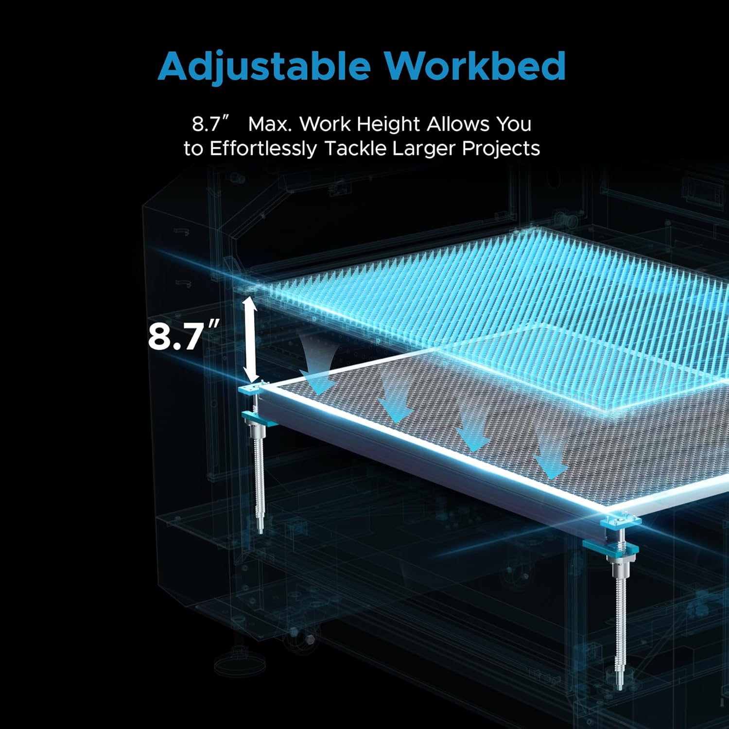 • Tackle Bigger Projects: With a large 28"x20" workspace and lightning-fast 1,000 mm/s engraving speed, this laser cutter lets you complete bulkier projects quickly and accurately, whether you're engraving intricate designs or cutting larger materials
