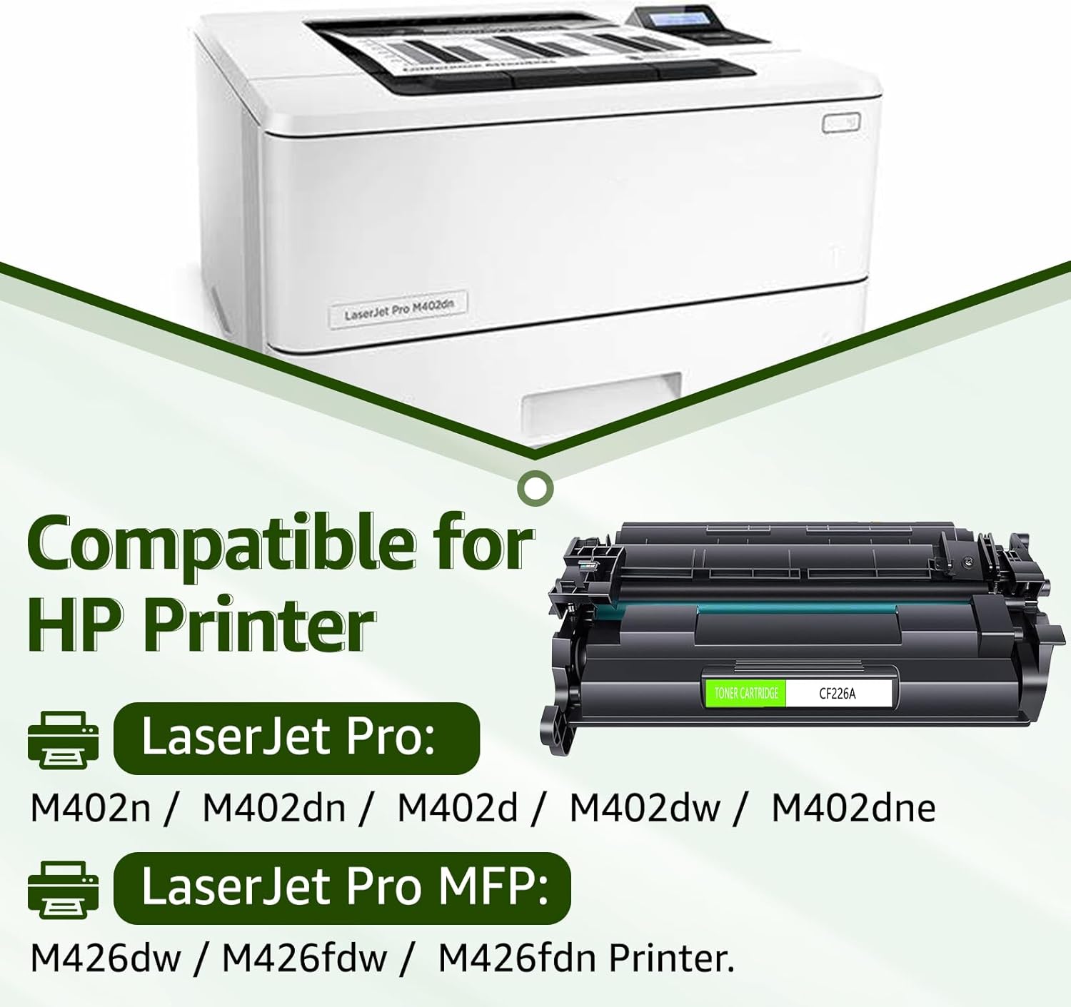 • Excellent Quality: CF226A black toner cartridge can be instantly recognized by your printers and work perfectly, making daily documents, reports, letters, graphics and photos very crisp and bright.