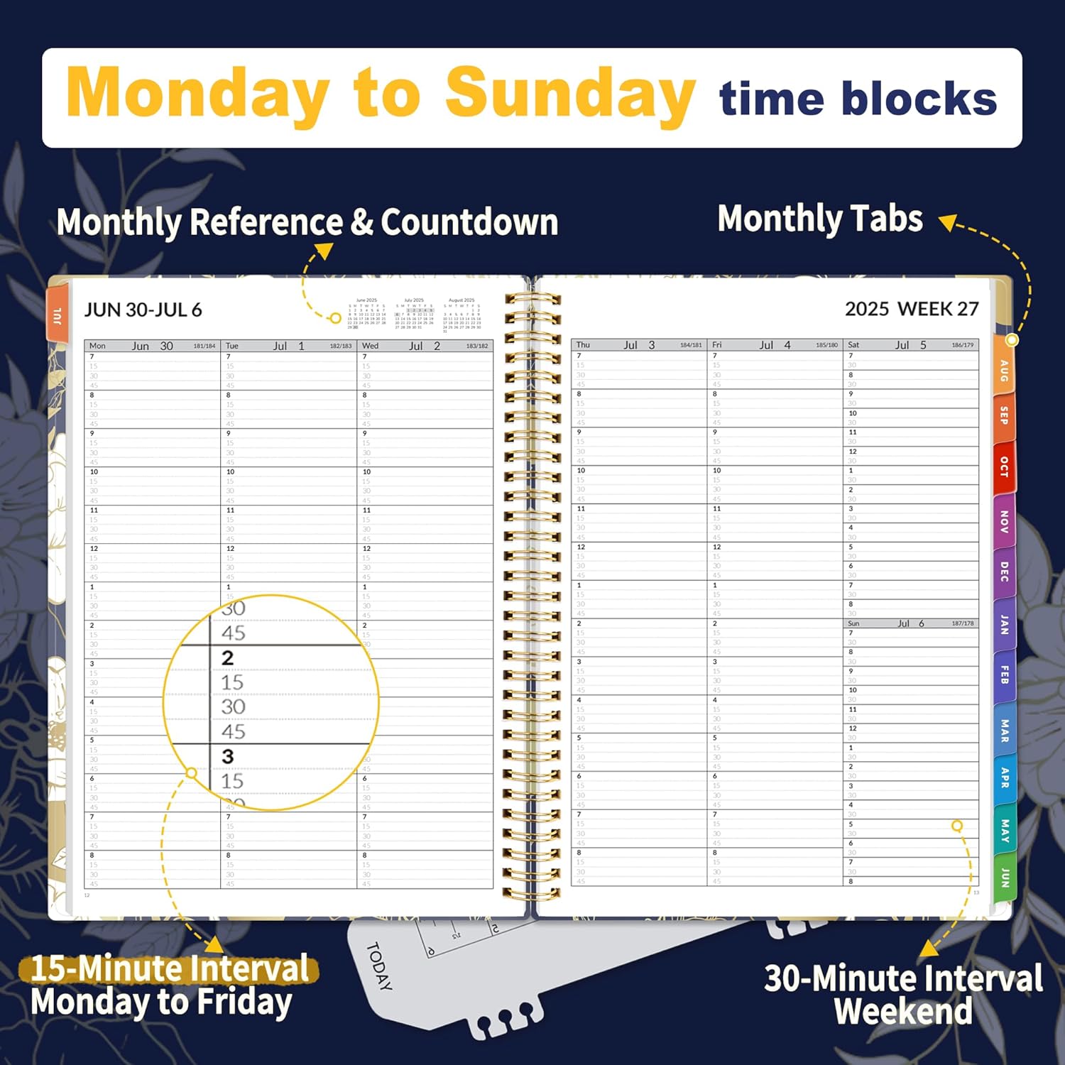 SUNEE 2025-2026 Appointment Book, Quarter-Hourly, Weekly & Monthly - from July 2025 to June 2026, 8.5"x11" Academic Planner, Flexible Cover, Note Pages, Bookmark, Spiral Binding, Vintage