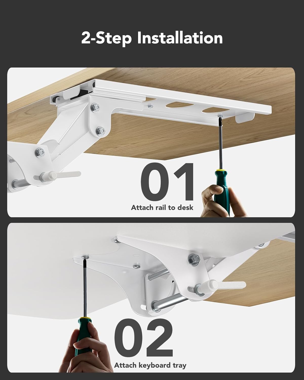 • Easy Installation - All necessary hardware and instructions are provided for assembly. Please confirm your table before buying (Minimum Depth >21.26", Minimum Width >35.4", Desk Thickness >0.6"); This Keyboard tray can be mounted on solid wood, particleboard, density board and MDF board; Make sure there are no barriers under your desk before purchasing, such as beams or table leg.
