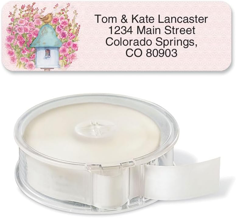• Each roll of customizable address labels includes 250 stickers on a clear acrylic dispenser for quick and easy application