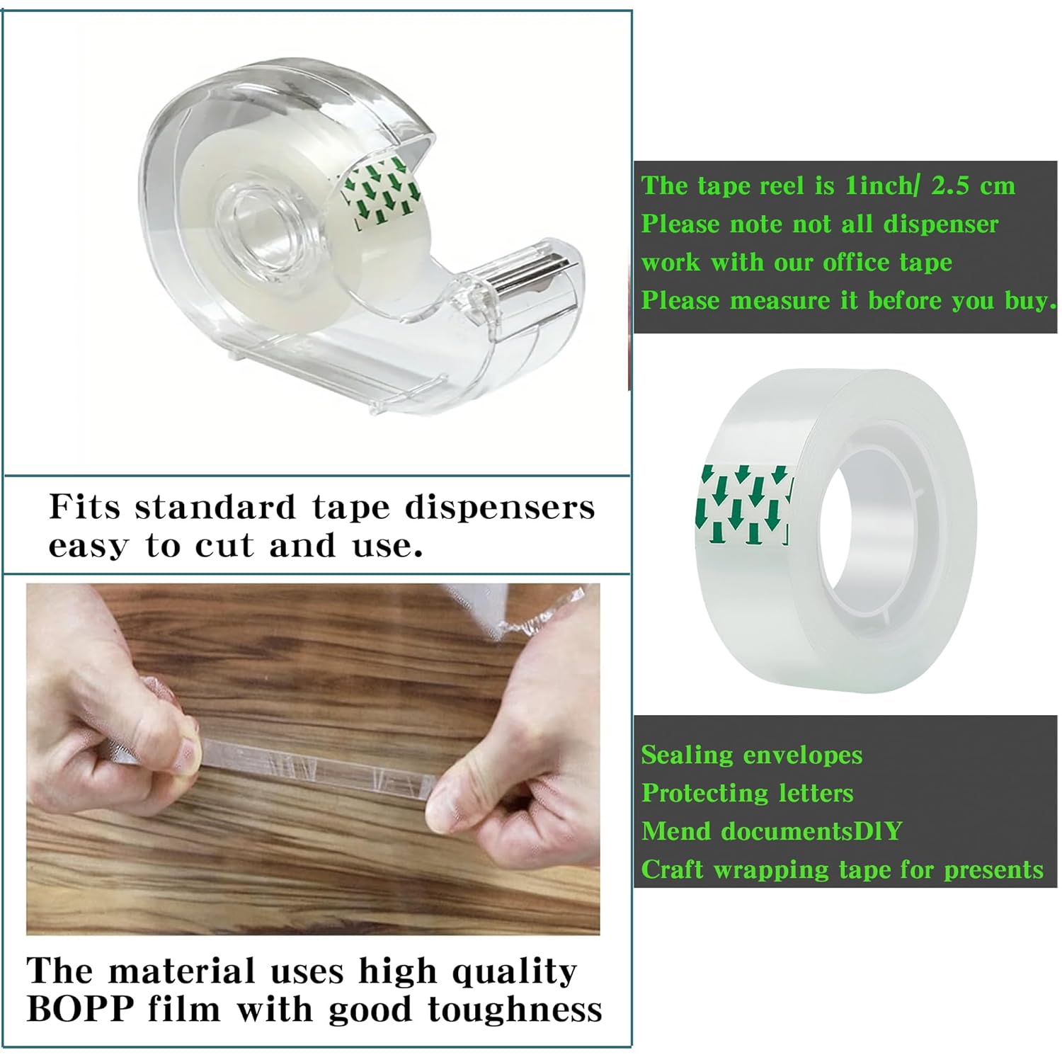 • CLEAR TAPE: Multi pack Tape rolls bulk with transparent tape dispenser and clear tape with special adhesive technology for stronger adhesion, giving your products a stronger seal while safely, permanently and invisibly repairing tears and breaks