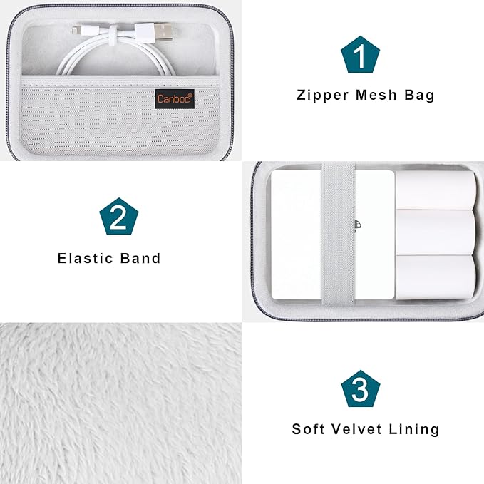 • 【Simple and Practical Design】 The M02 label maker case inner mesh pocket storage space keeps the items well-organized, and can effectively store small label printer accessories. Built-in elastic band can fix label printer and prevent m02 printer from accidentally falling.