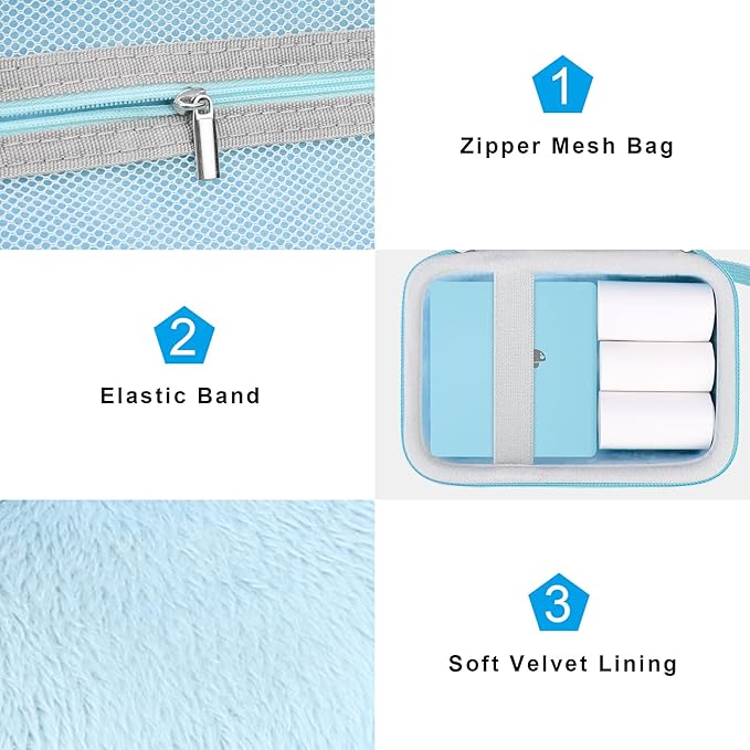 • 【Simple and Practical Design】 The T02 label maker case inner mesh pocket storage space keeps the items well-organized, and can effectively store small label printer accessories. Built-in elastic band can fix T02 label printer and prevent m02 printer from accidentally falling.