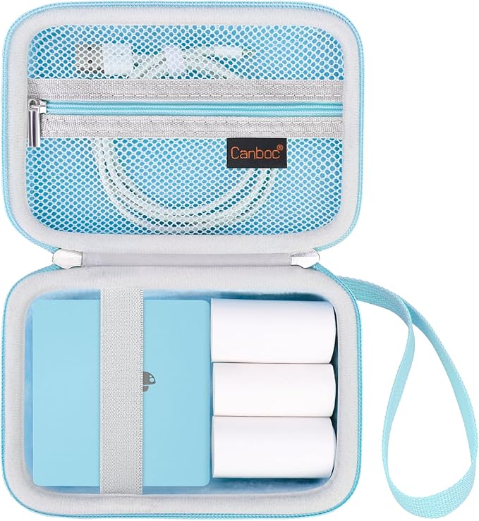 Canboc Case for Memoking/Ponek/Phomemo/Omezizy/Memoqueen T02 Mini Printer Sticker Printer/Phomemo M02 Printer, T02 Portable Thermal Printer Box for Thermal Paper, USB Cable, Blue (Case Only)