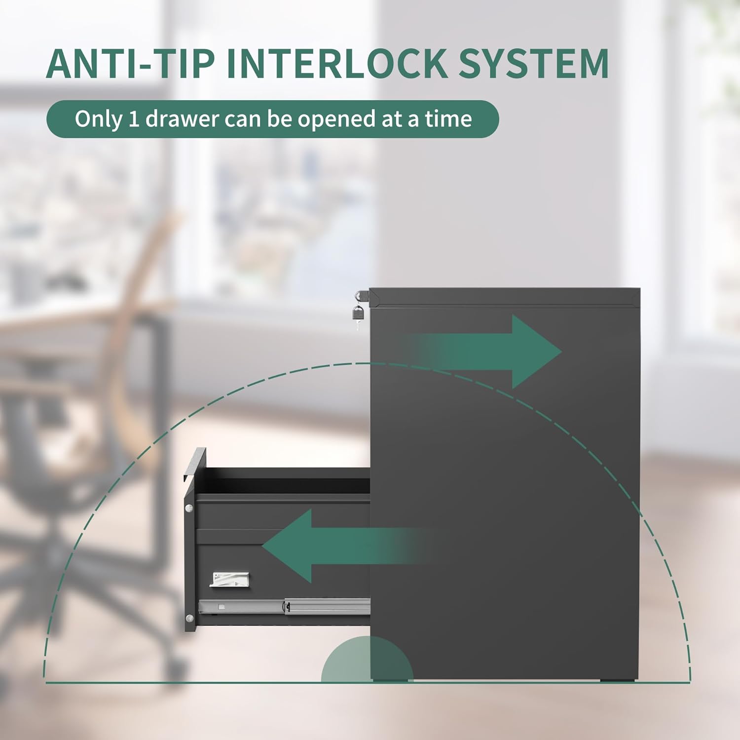 • 【HIGH SECURITY】This filing cabinets for home office with lock has one lock equipped with 2 keys securing all your files,you can lock all the drawers at the same time,with an anti-tilting mechanism, when one drawer of the narrow file cabinet is opened, the interlocking system prevents the other drawer from opening.