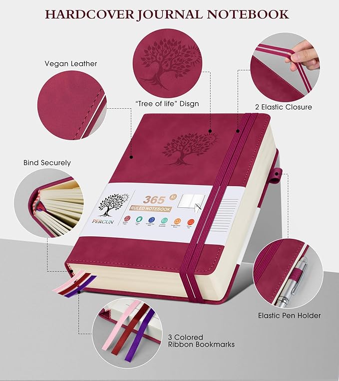 • 【365 Pages Premium Thick Paper】: Our PERCUN lined journal notebook is made of 365 pages high-quality 100Gsm thick ruled pager with an acid-free light Ivory paper that is thicker than normal. This premium quality paper will not cause bleeding, ghosting or smudging and is suitable for most types of pens,provides ample space for journaling, note-taking, and creative writing. The line spacing is 7mm, making it easy to write legibly and neatly.