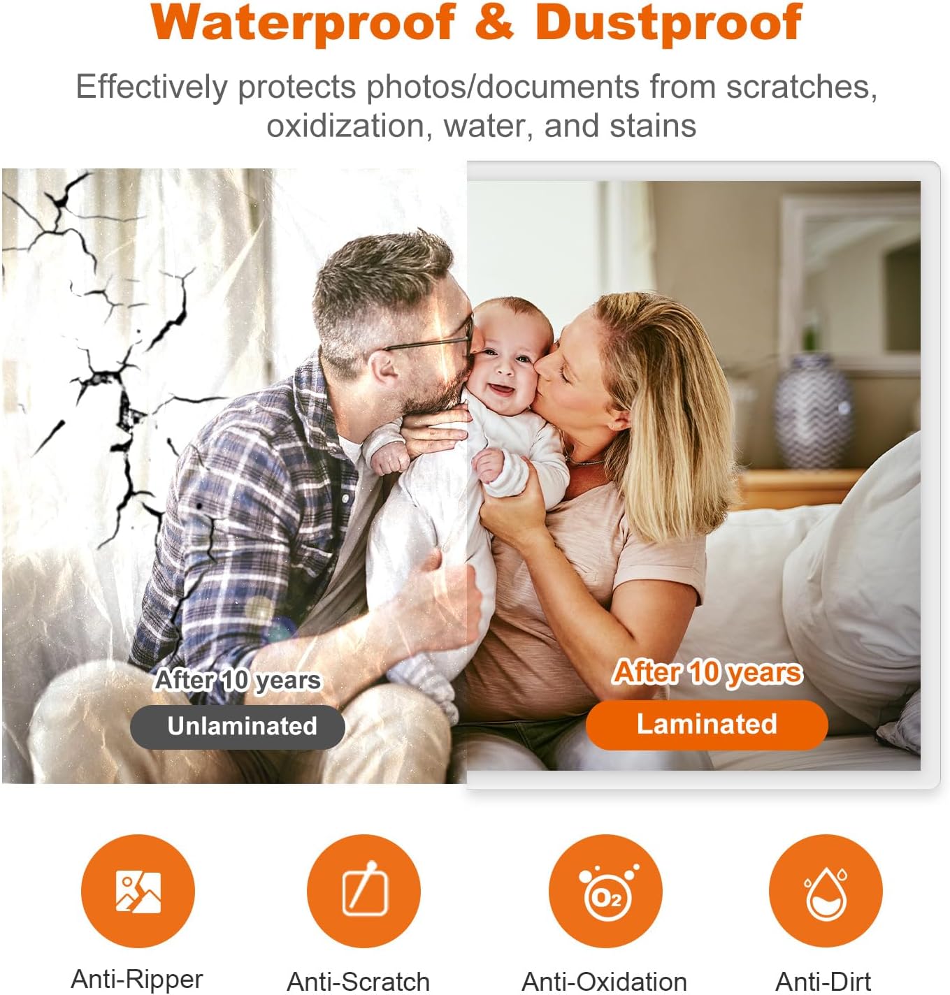 • 100% Never Jam - Laminator machine has built-in patented jam proof technology, which effectively prevents glue jamming during the operation of the machine, protects items from damage, and provides the most effective protection for your items