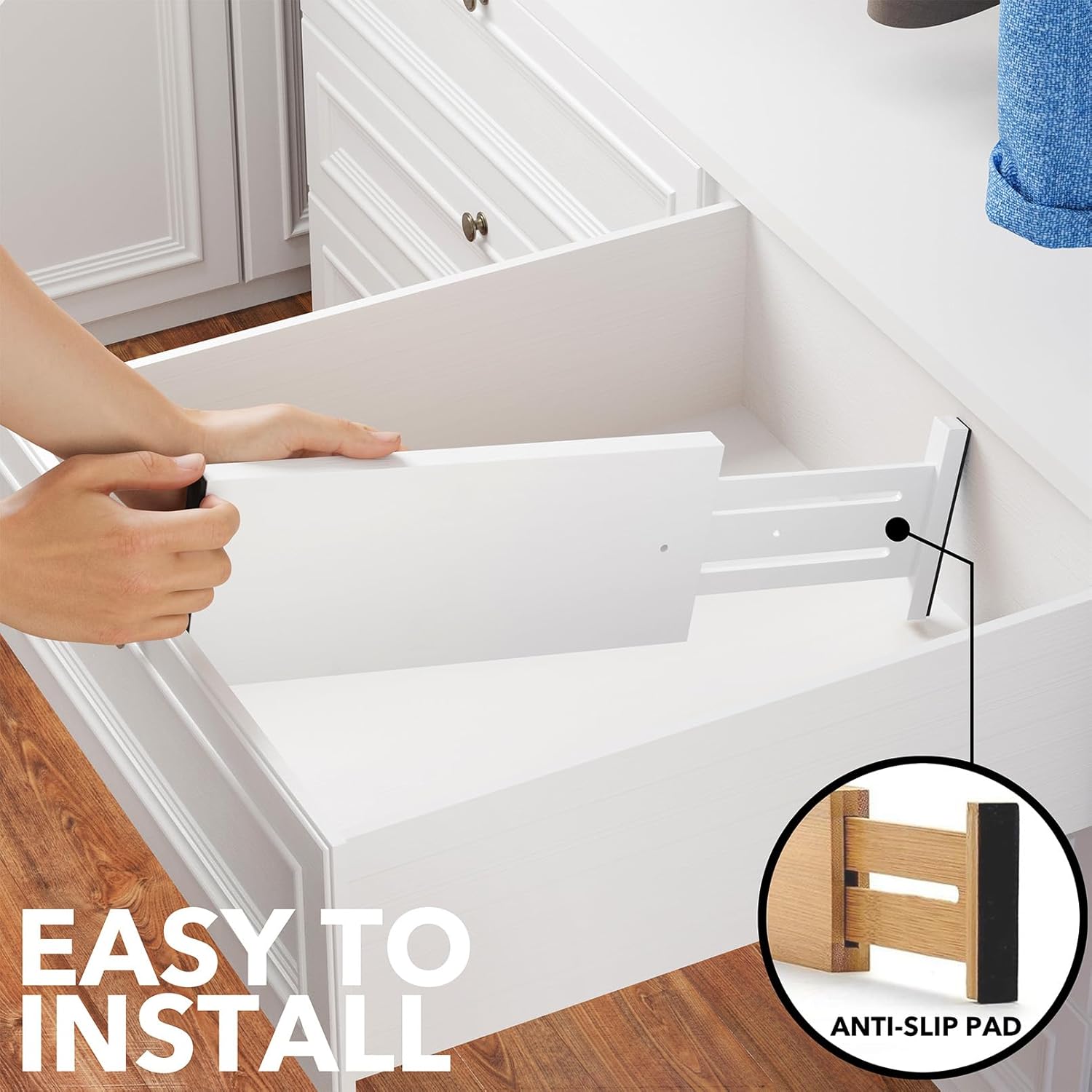 • 6 White Drawer Dividers: Customize your dresser drawer with our bamboo dresser organizers; You can organize your clothes dresser with this 4.65 inches high drawer dividers