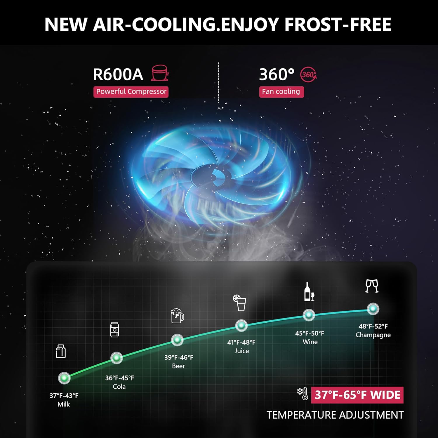 • 【Cooling & Storage 2-IN-1】- The beer fridge adopts advanced circulating air duct refrigeration technology, it doesn't produce air frost, and the high quality compressor's can give full play to its performance, making it run with lower power consumption (0.48kwh/day) and low noise (≤40dB). The drink fridge features a high-quality stainless steel frame and two layers of tempered glass, as well as a seamless foam layer to maximize the taste of beverages