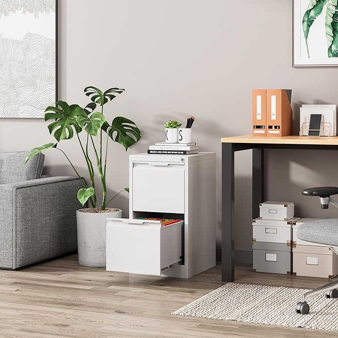• 【Sturdy and Durable】Metal file cabinet drawers crafted from steel material, designed to be durable and suitable for all your storage needs. With a powder coating process that bonds and bakes the protective coating to the bare metal, the 2 drawer file cabinet with lock forms an effective barrier against corrosion.