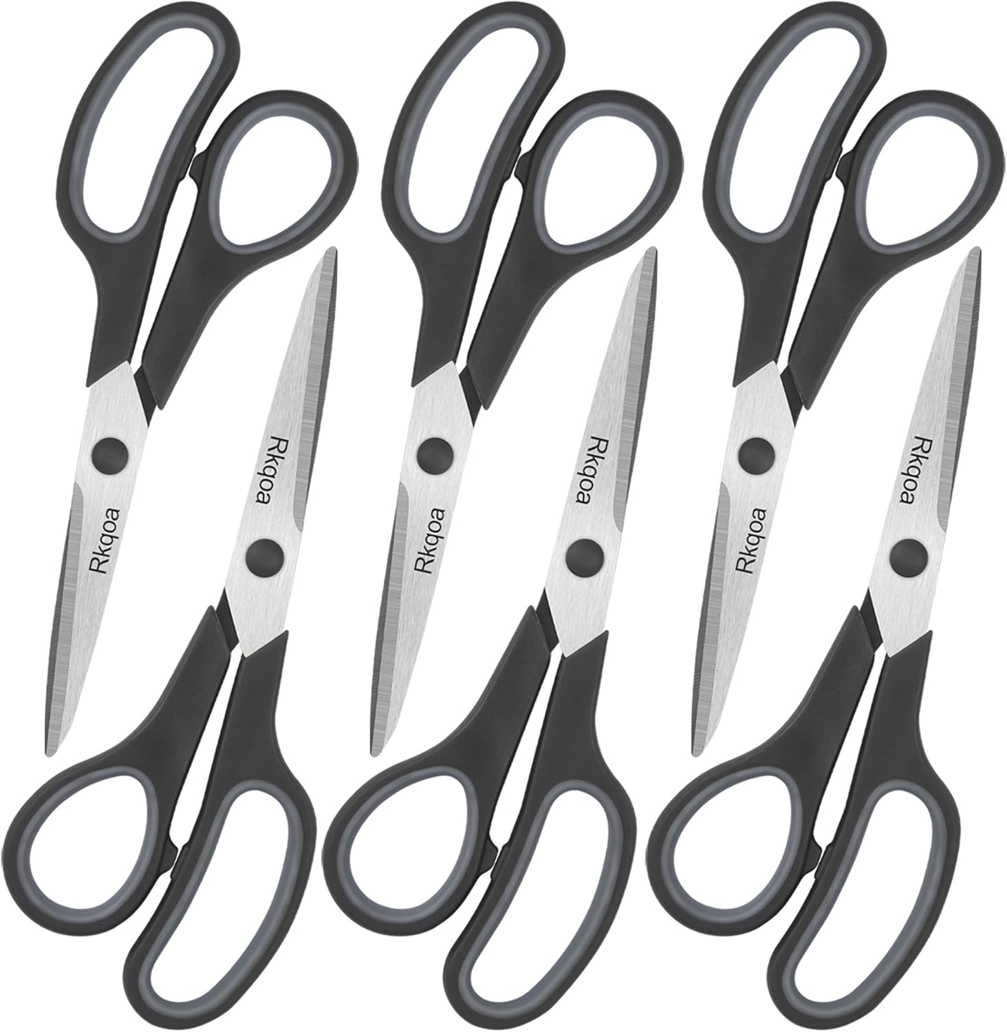 Black 6 Scissors Pack, Rkqoa 8" All Purpose Scissor - High Performance and Designed for Everyday use, Stainless Steel Shears Set with Comfort Grip, Right/Left Handed